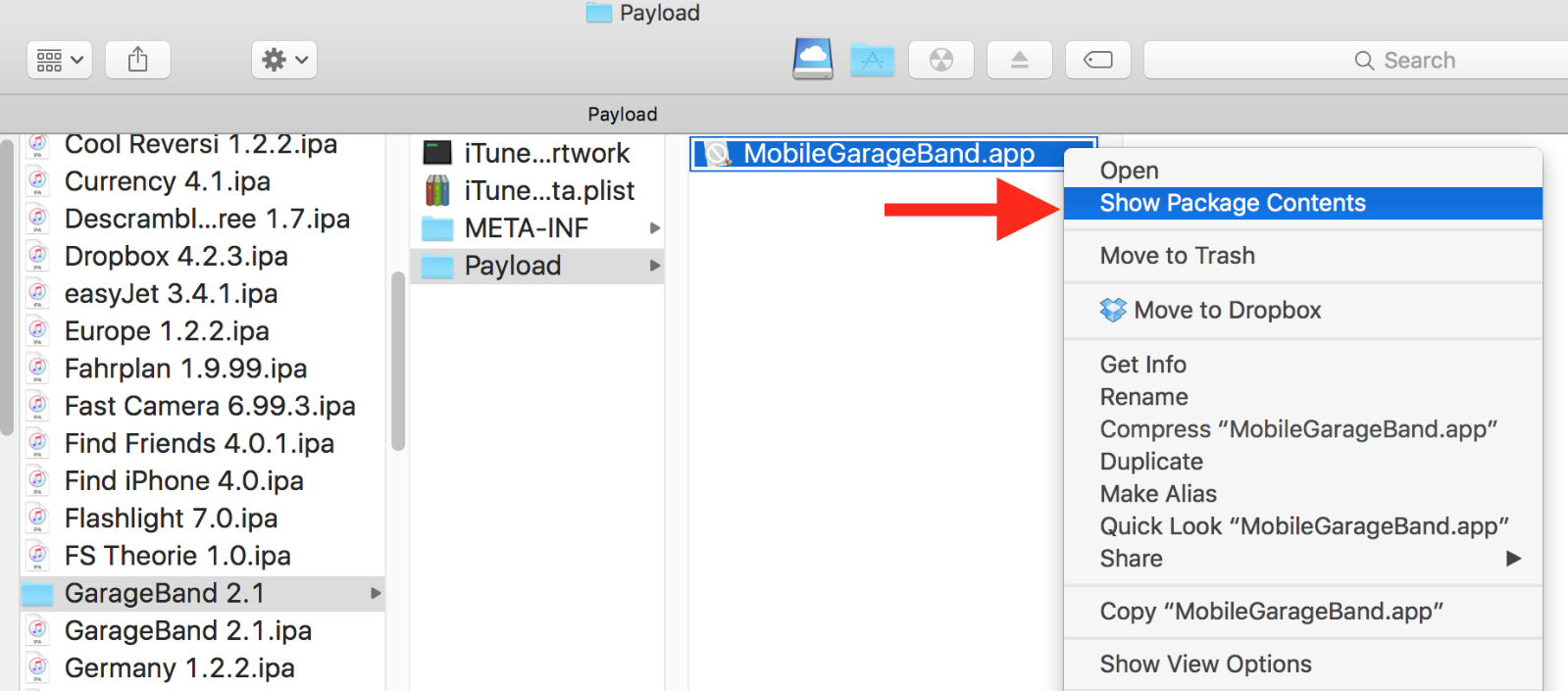 ~/Music/iTunesCloudLibrary/iTunes Media/Mobile Applications/GarageBand 2.1.ipa - Rechts-klicke das GarageBand 2.1.ipa Paket.