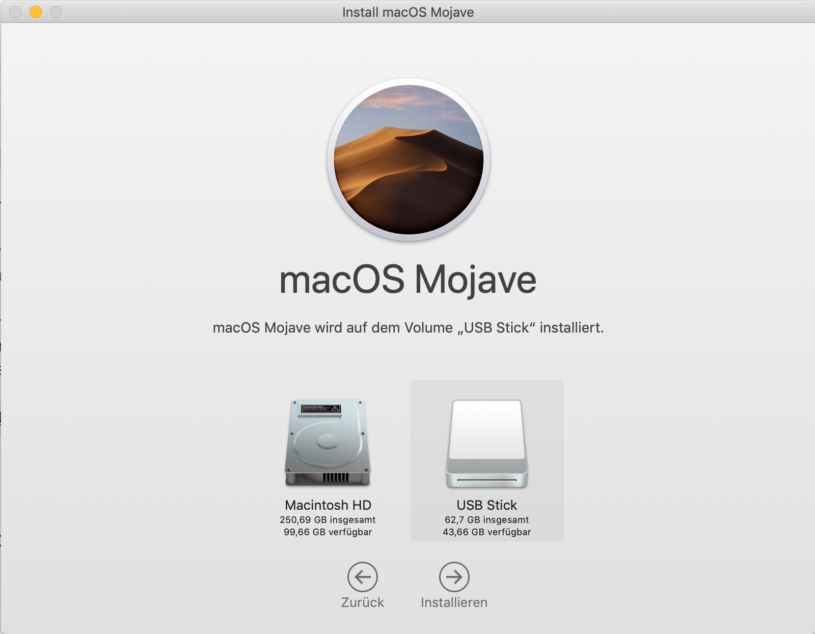 Als Beispiel werden wir macOS Mojave auf einem USB-Stick installieren.