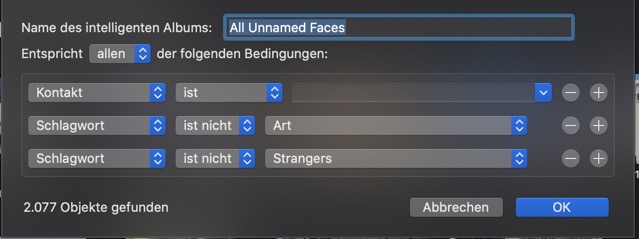 Ein Problem bleibt allerdings. In diesem Album werden viele Fotos von Personen oder Statuen oder Artefakten auftauchen, die wir gar nicht benennen wollen, weil wir die Personen gar nicht kennen oder sie uns unwichtig sind. Aber Fotos erlaubt uns seit High Sierra nicht mehr, automatisch erkannte Personen zu löschen oder zurückzuweisen.