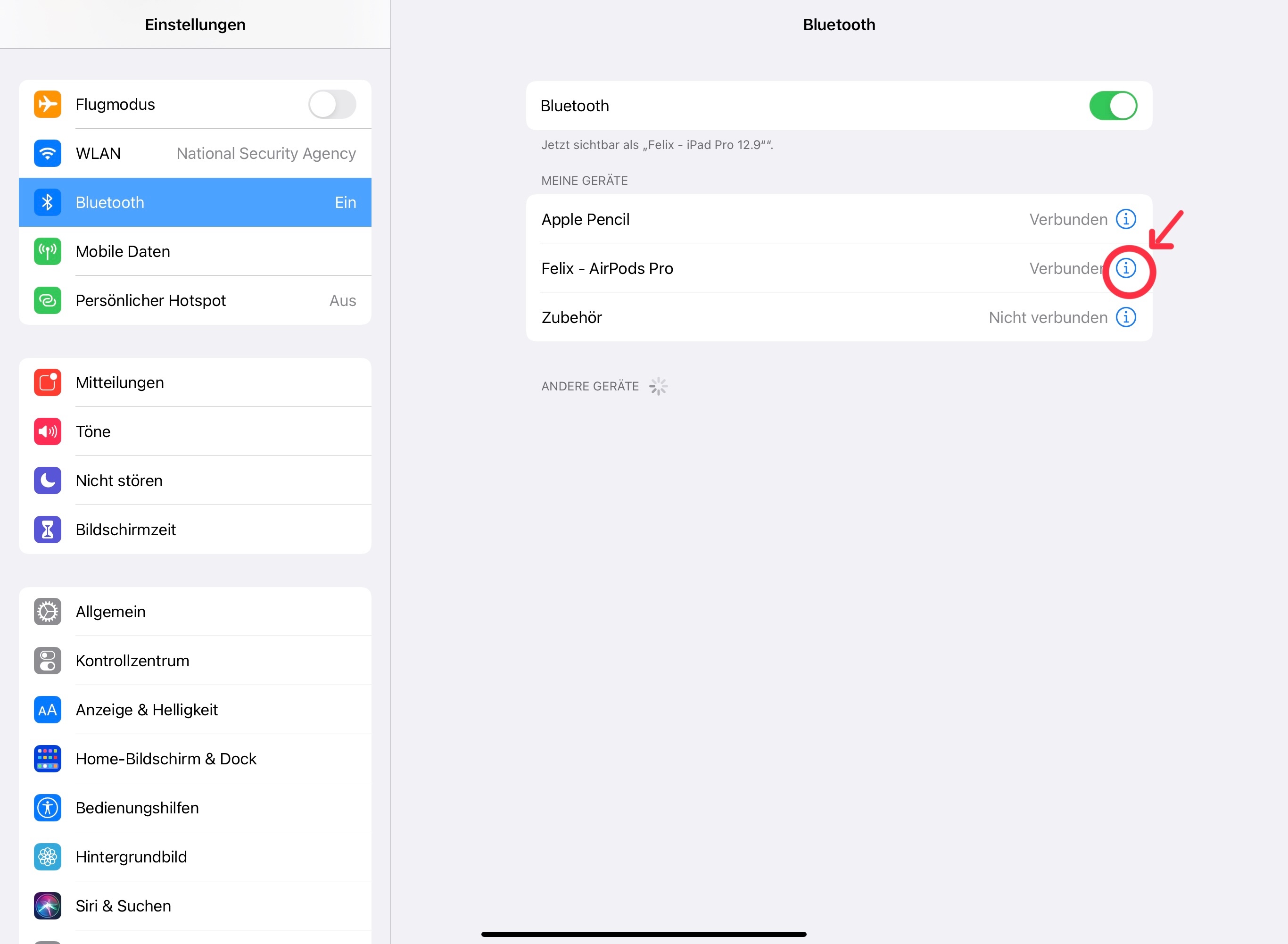 2 Tippt auf das „i“ hinter den AirPods