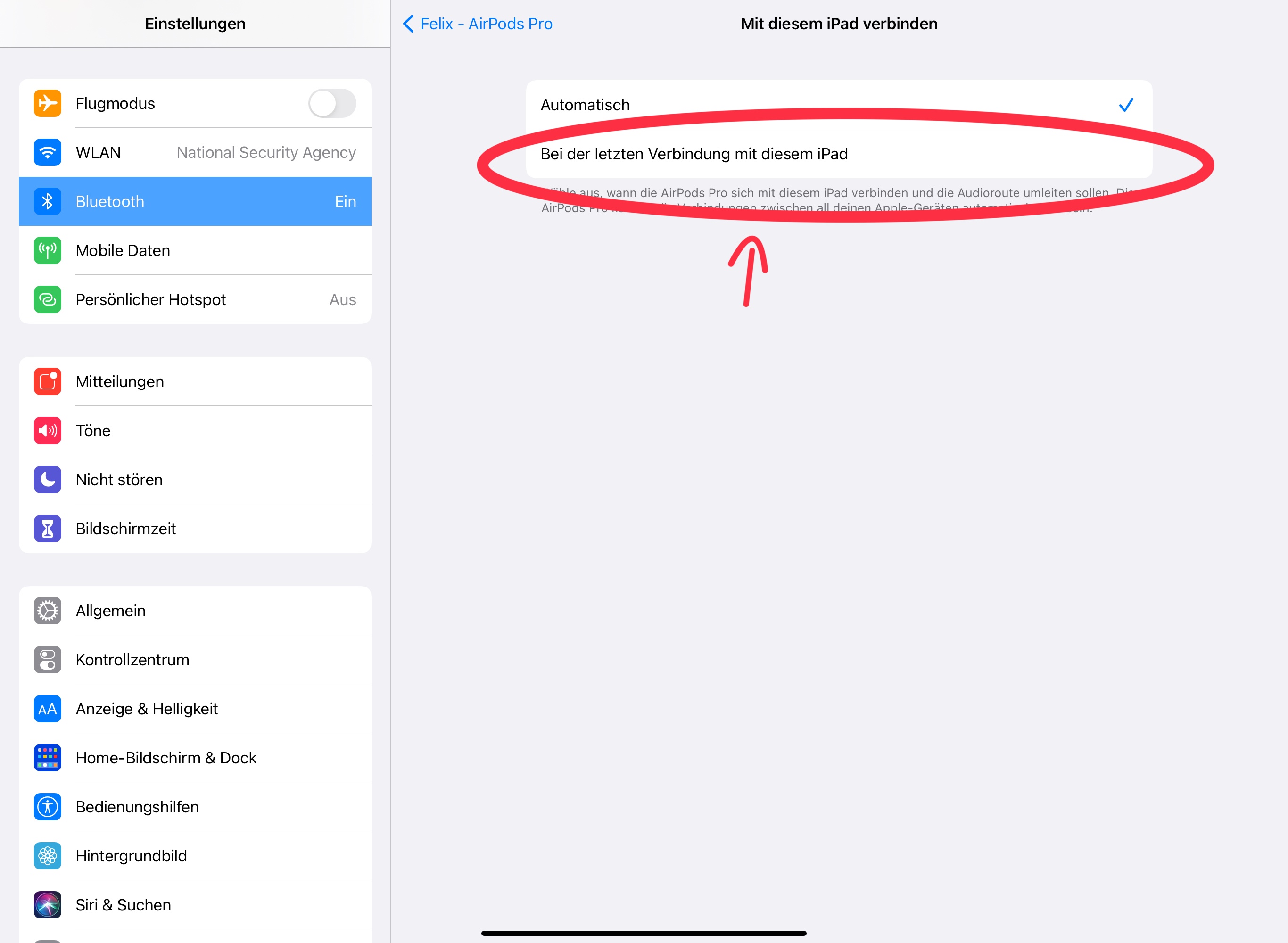 4 Ändert nun die Einstellungen von „Automatisch“ auf „Bei der letzten Verbindung mit diesem iPad / iPhone“.