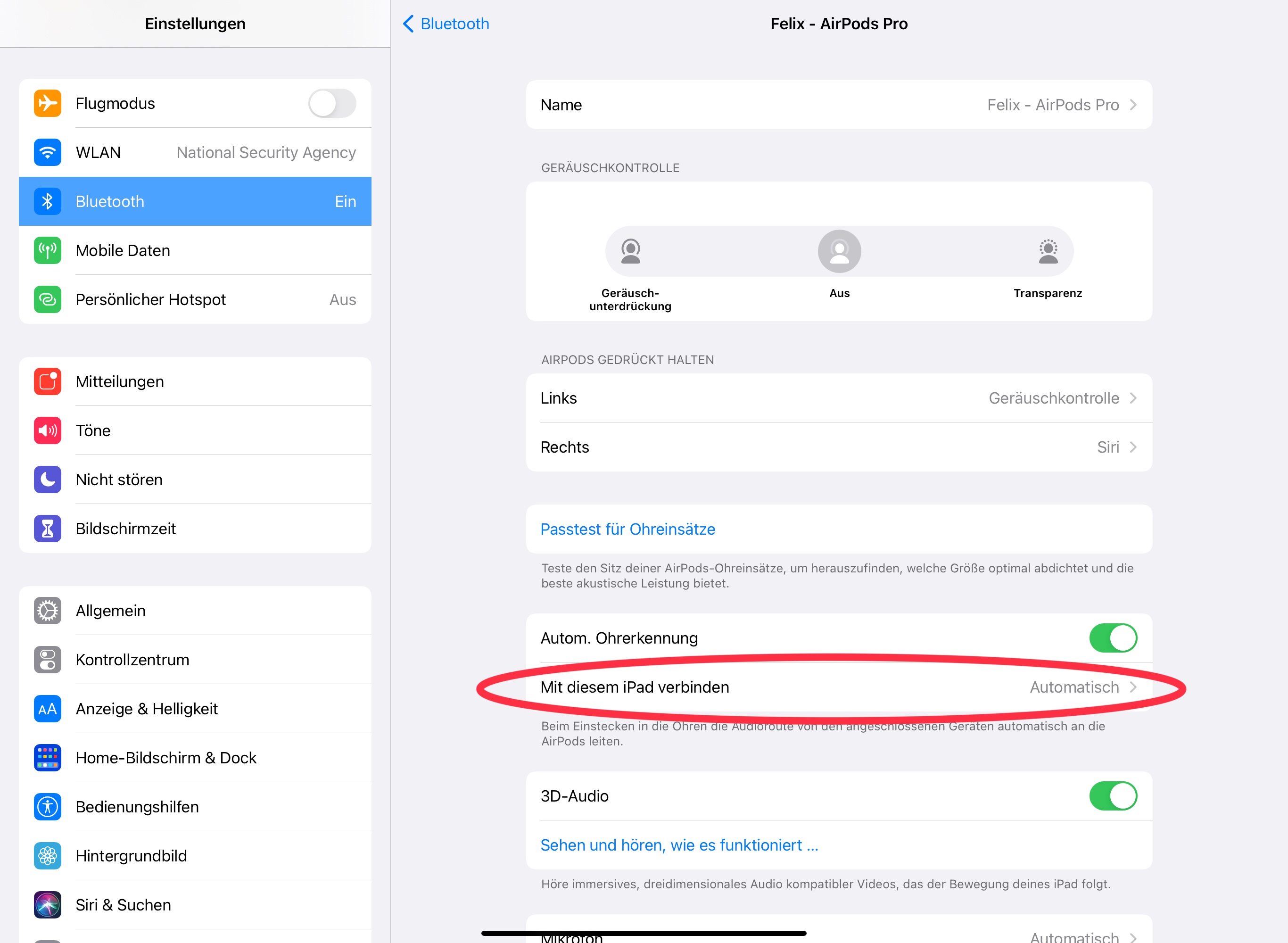 3 Es sollte der Punkt „Mit diesem iPad / iPhone“ erscheinen. Tippt auf diesen. Ab Werk ist er auf automatisch gestellt.