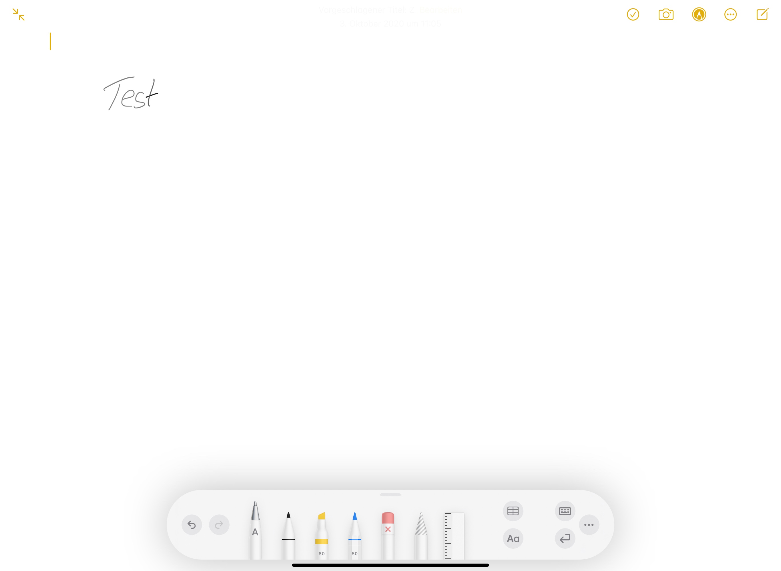 5 Abschließend könnt Ihr beispielsweise in der Notizen-App testen, ob euer „gekritzelter“ Text in reale Buchstaben umgewandelt wird.