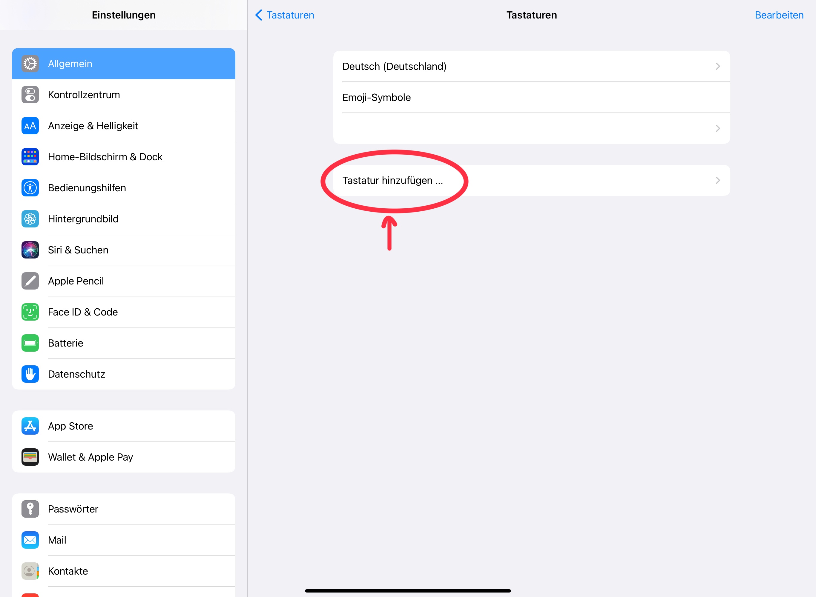 2 Geht auf den Button „Tastatur hinzufügen“.