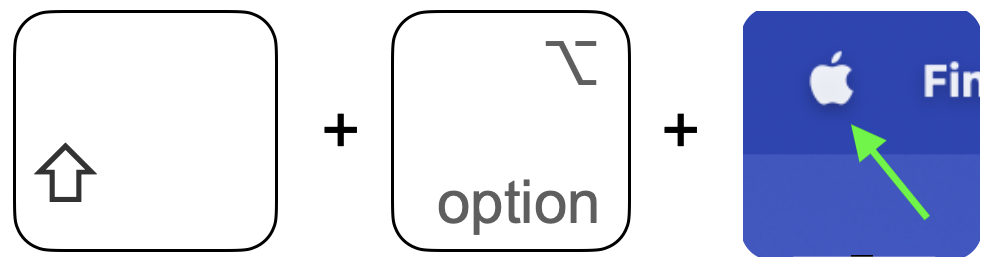 Drucke die Shift-Taste⇧ + option-Taste⌥ und klicke gleichzeitig auf das Apple Logo in der linken Ecke des Bildschirms.
