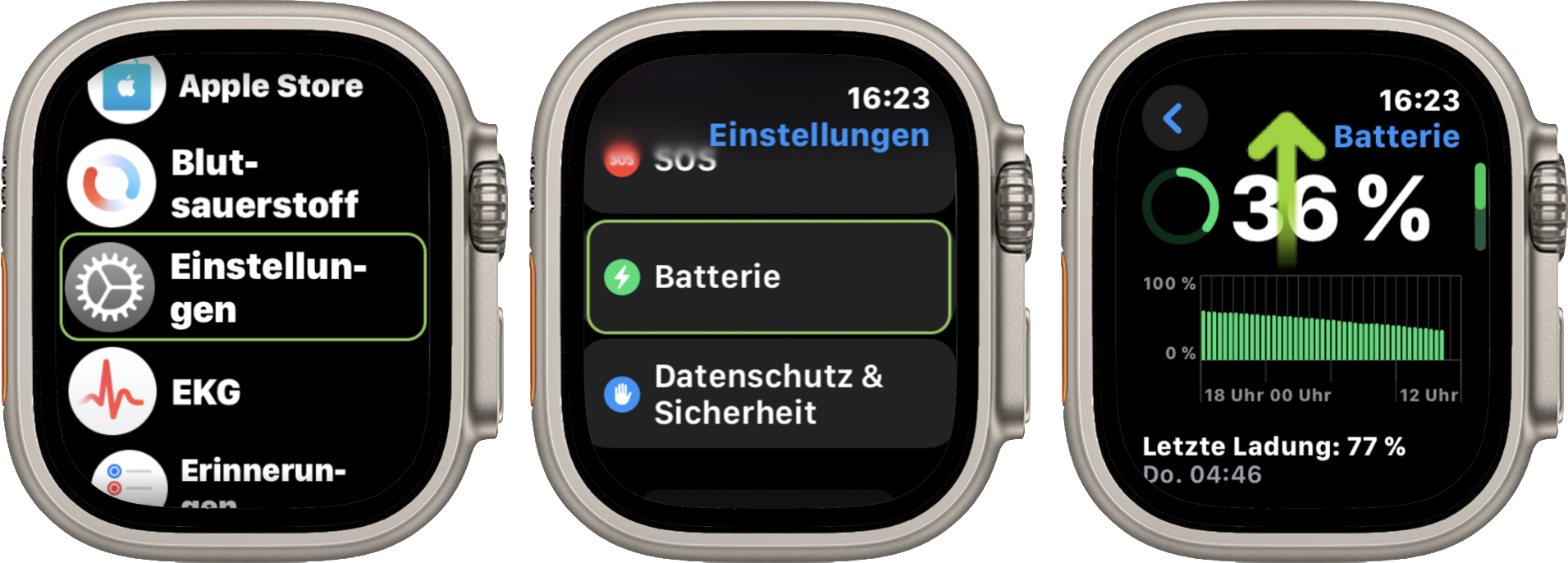 und scrolle weiter nach unten und tippe auf "Batteriezustand".