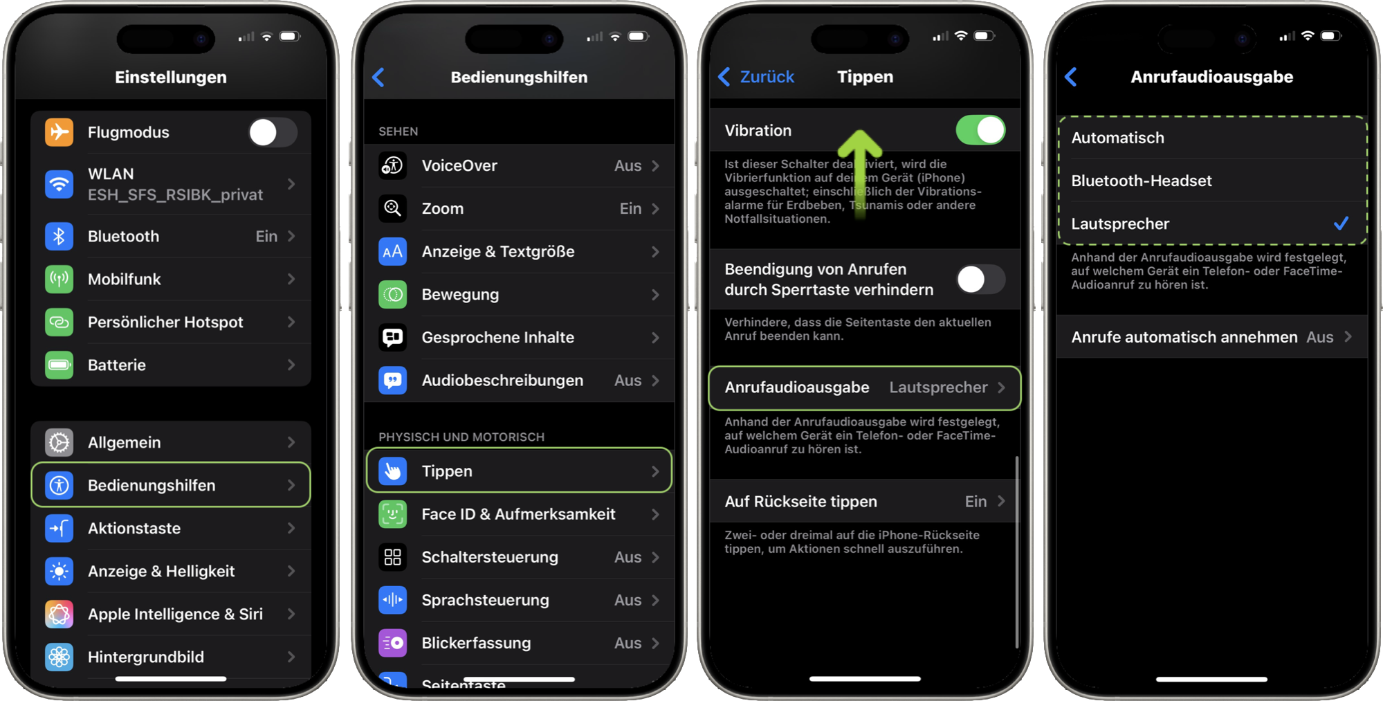 Die Audioausgabe von Telefonanrufen oder FaceTime-Anrufen kannst du auch automatisch an den Lautsprecher, eine Hörhilfe oder an ein anderes Bluetooth-Headset weiterleiten.