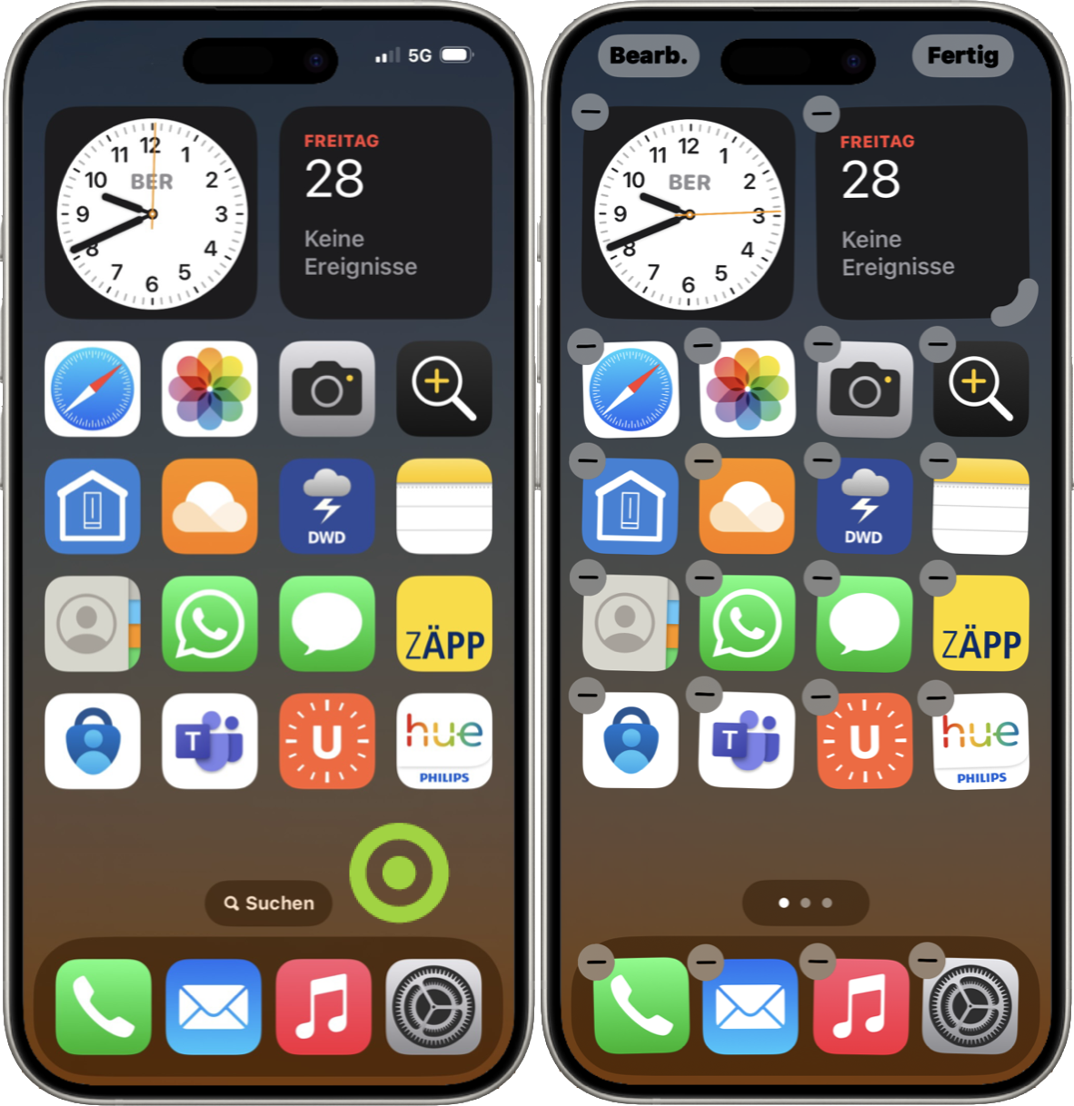 Du kannst auch länger auf ein Icon tippen und die dazugehörige App über diesen Weg entfernen.