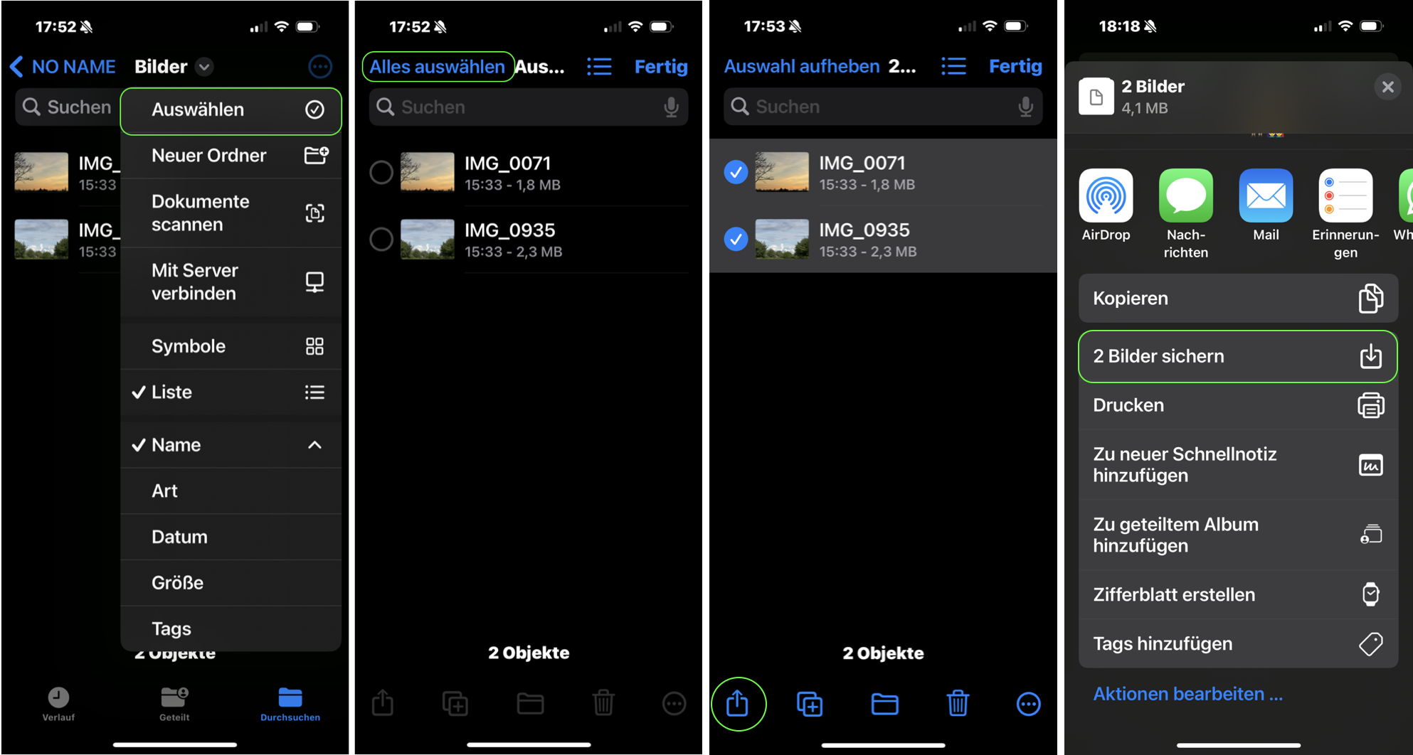 Tippe auf „2 Bilder sichern“ (die Anzahl kann variieren) und anschließend auf „Fertig“.
