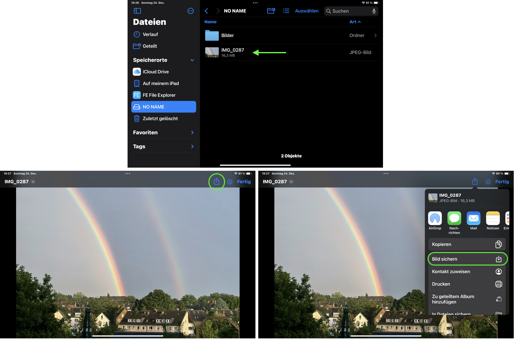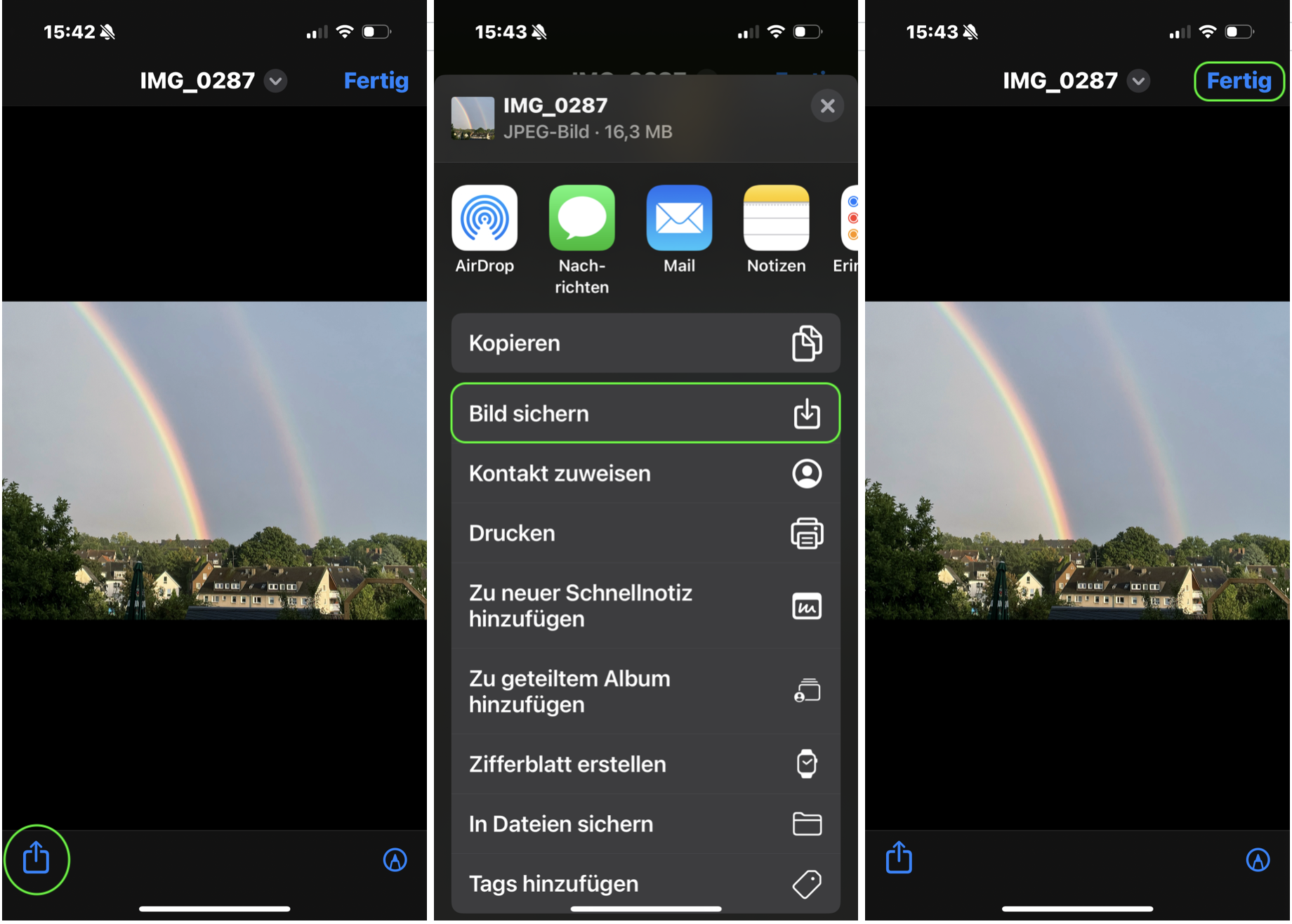 wähle dann „Bild sichern“ und tippe im Folgebildschrim auf „Fertig“.