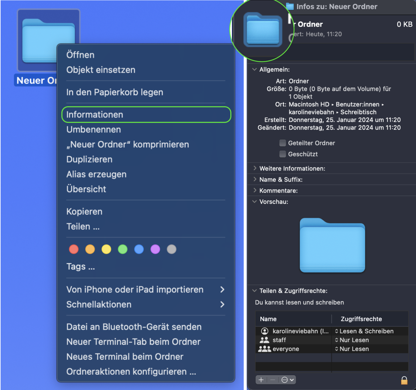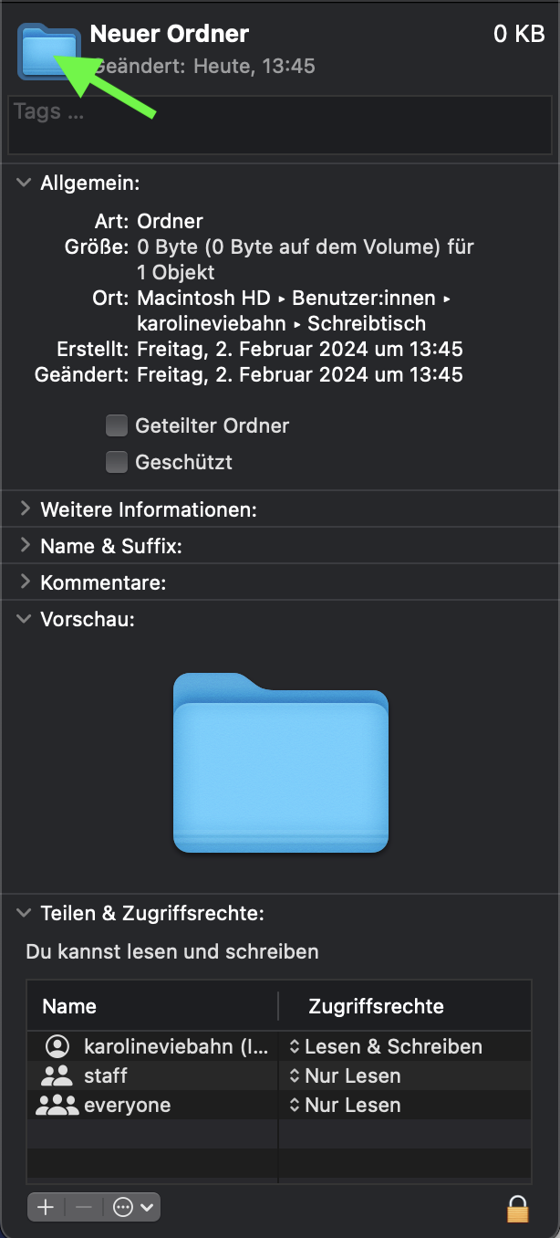 Diese Datei kannst du dann (wie oben beschrieben) einfügen und so das Aussehen deines Ordners im Finder oder auf dem Schreibtisch ändern.