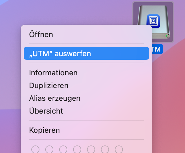 3. Nachdem dies erledigt ist, könnt ihr die Image-Datei auswerfen. Mit einem Rechtsklick auf das Image Symbol auf eurem Schreibtisch könnt ihr dies bewerkstelligen.