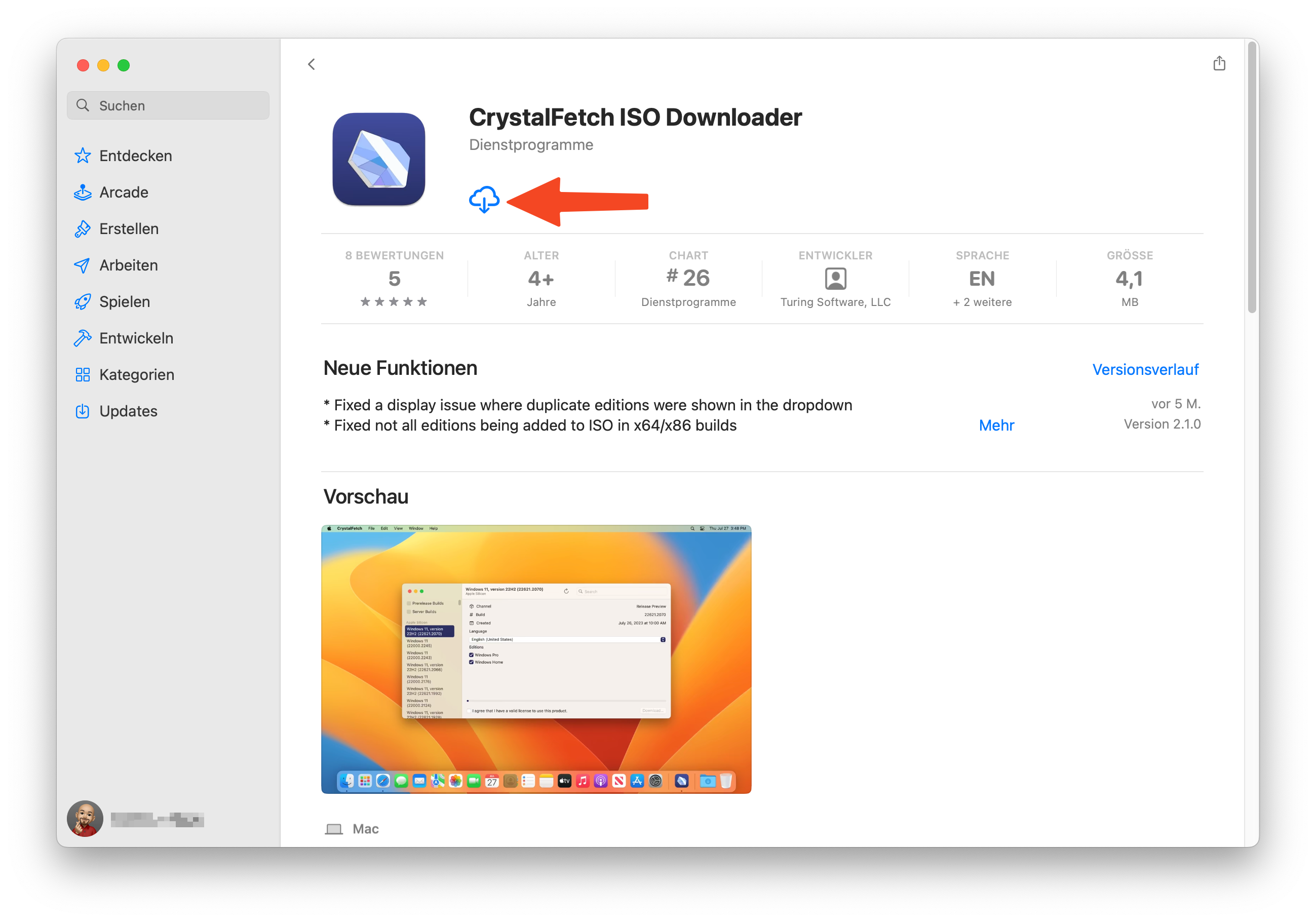 Nutz den Link oben oder sucht im AppStore auf eurem Mac nach "Crystal Fetch" um die App herunterzuladen und zu installieren. Das Vorgehen sollte bekannt sein, ich werden nicht weiter darauf eingehen, wer weitere Unterstützung zum installieren aus dem AppStore benötigt, findet hier die passende Anleitung: Installieren von Apps, die im App Store auf dem Mac gekauft wurden - Apple Support (DE)