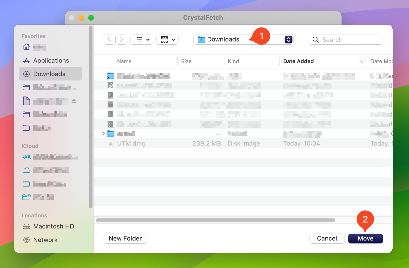 3. Nach dem Download und dem Packen der ISO-Datei (alles automatisch), werdet ihr gefragt wohin die ISO-Datei verschoben werden soll. Wählt hier ein Speicherort, welchen ihr gut wieder findet. Ich benutzt hierzu den Download-Ordner. Crystal Fetch könnt ihr am Anschluss beenden, die App wird jetzt nicht mehr benötigt.