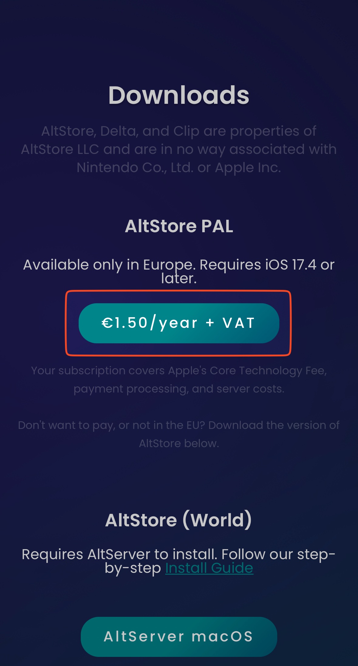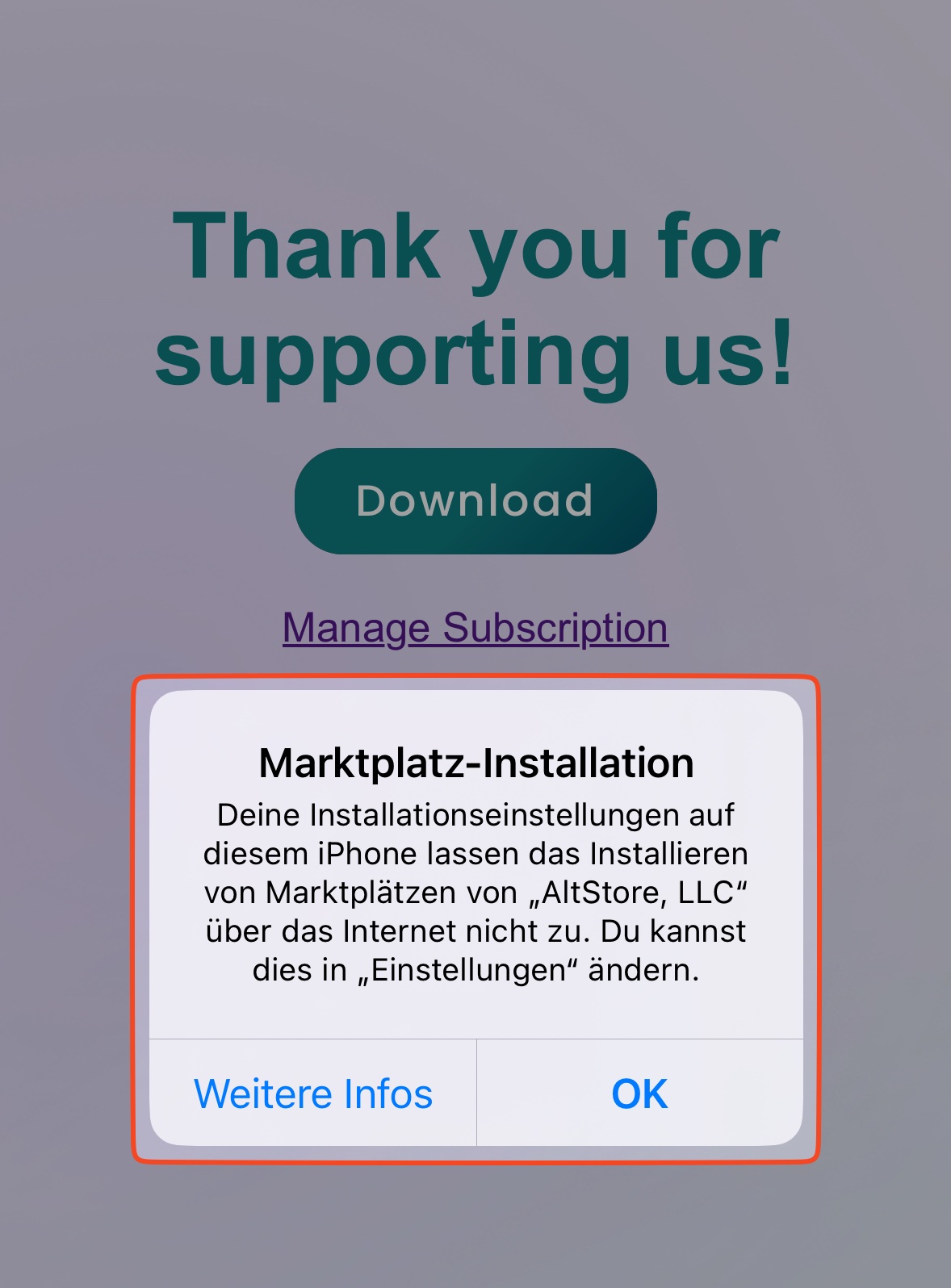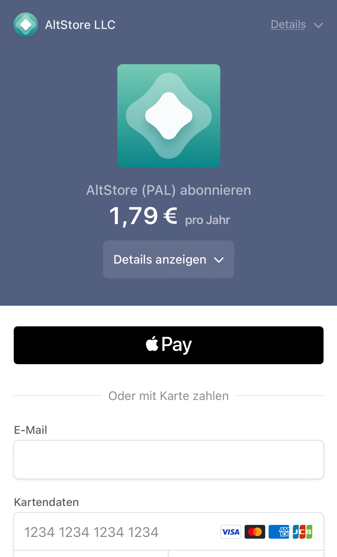 WICHTIG: Unterhalb des Downloadbuttons befindet sich ein Link (Manage Subscription) um das Jahresabo ggf. wieder zu stornieren. Nutze diese Funktion und sende dir selbst eine Anmeldelink zu, verwende hierzu die Emailadresse, welche du beim Bezahlvorgang angegeben hast oder für Apple Pay verwendest (sieh: Einstellungen -> Wallet -> E-Mail). Im Nachgang kannst du über diesen Link dein Abo verwalten, du musst dabei Immer die Mailadresse verwenden, welche du bei der Bezahlung angegeben hast: Abo Verwaltung für AltStore PAL (stripe.com)