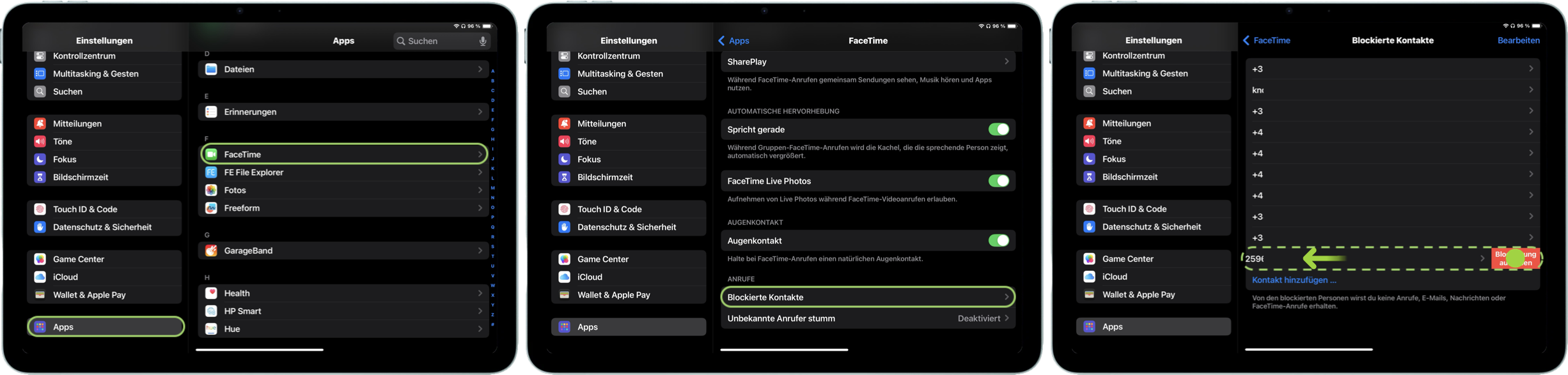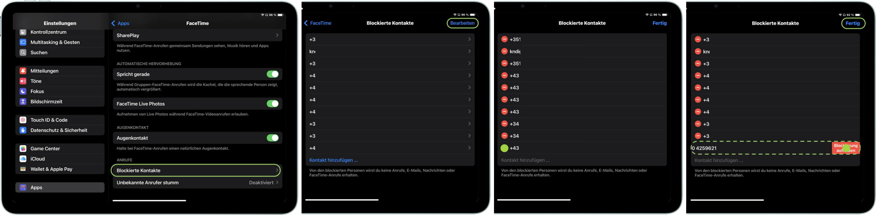 iPhone und iPad bieten auch an, Blockaden von Teilnehmern über den Bereich „Blockierte Kontakte“ aufzuheben. Tippe