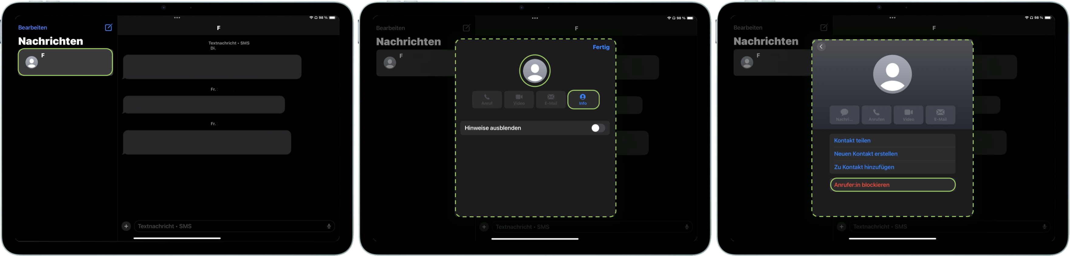 Auch auf dem iPad hebst du die Blockierung einzelner Kontakte auf demselben Weg auf.
