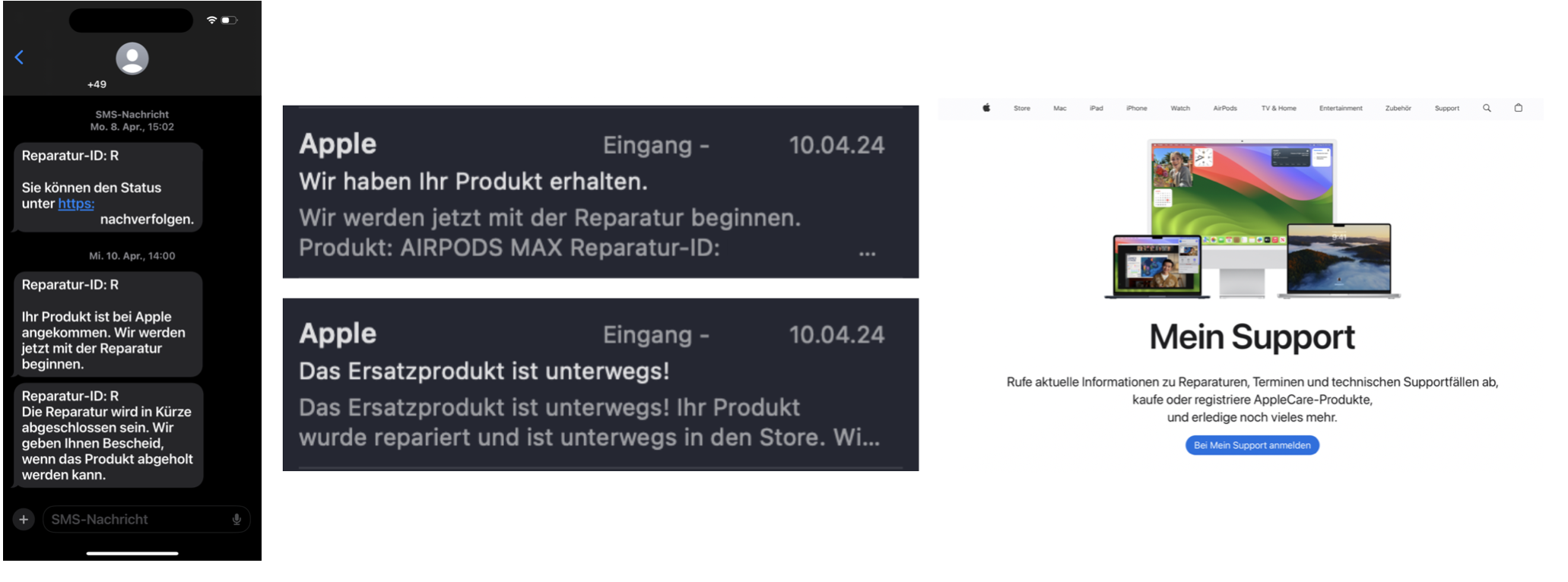 Drei Tage Später - also keine Woche - waren mein AirPods Max repariert und ich konnte diesen im Apple Store abholen. Dort wurde mir nicht nur die Reparaturbestätigung vorgelegt, Mir wurde genau erklärt, welche Teile ersetzt wurden.