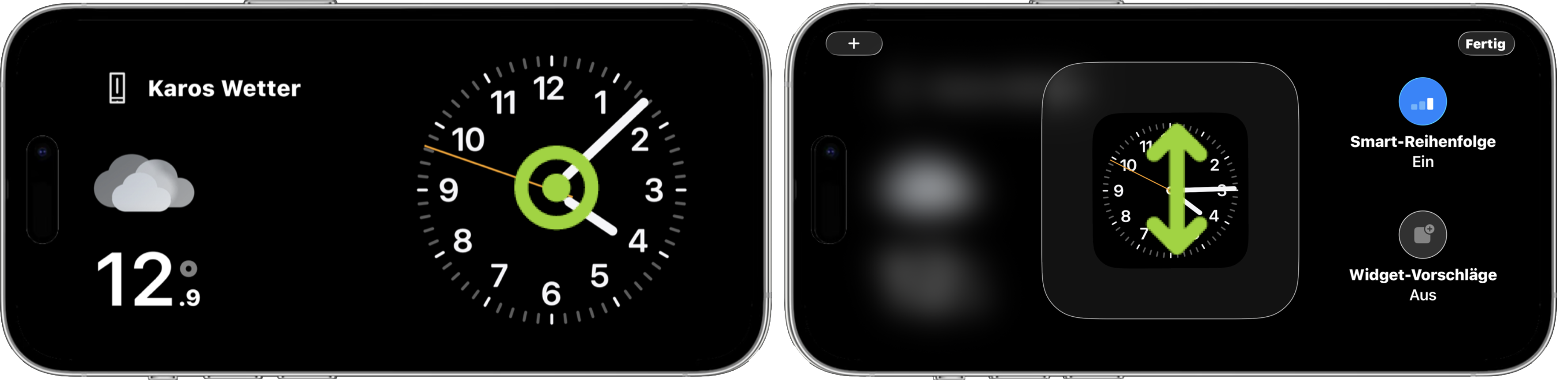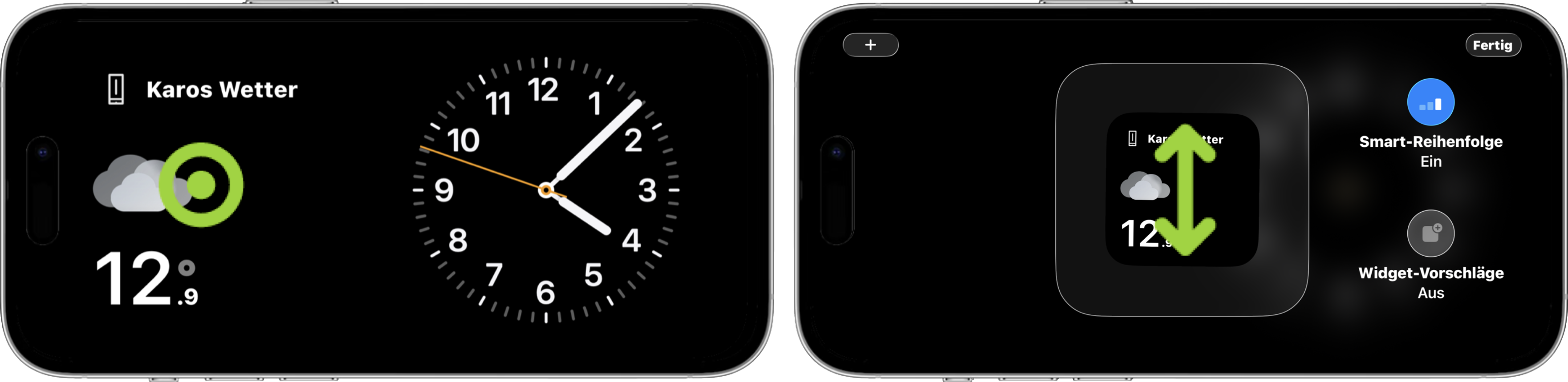 Auch hier kannst du dein bevorzugtes Widget auswählen, indem du nach oben oder unten streichst und anschließend auf die ausgewählte Darstellung tippst. Wähle danach „Fertig“.
