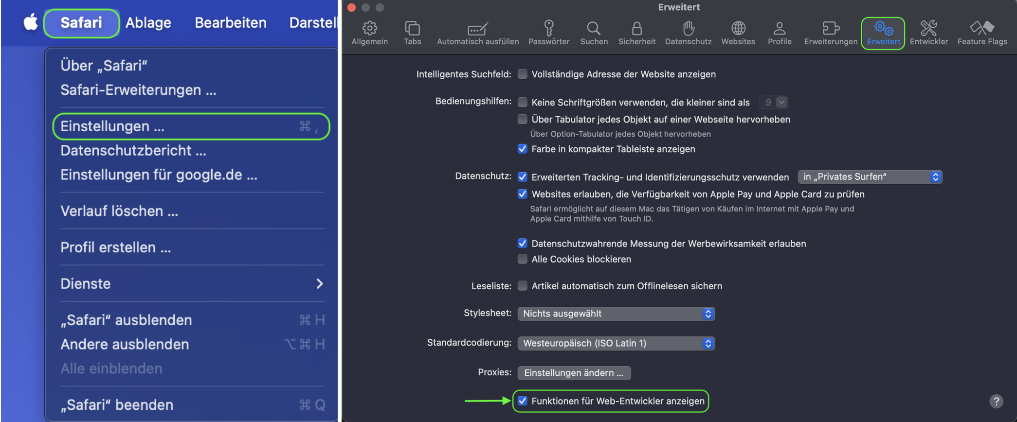 Starte bitte Safari und klicke in der Menüleiste noch einmal auf „Safari“. Gehe dann zu
