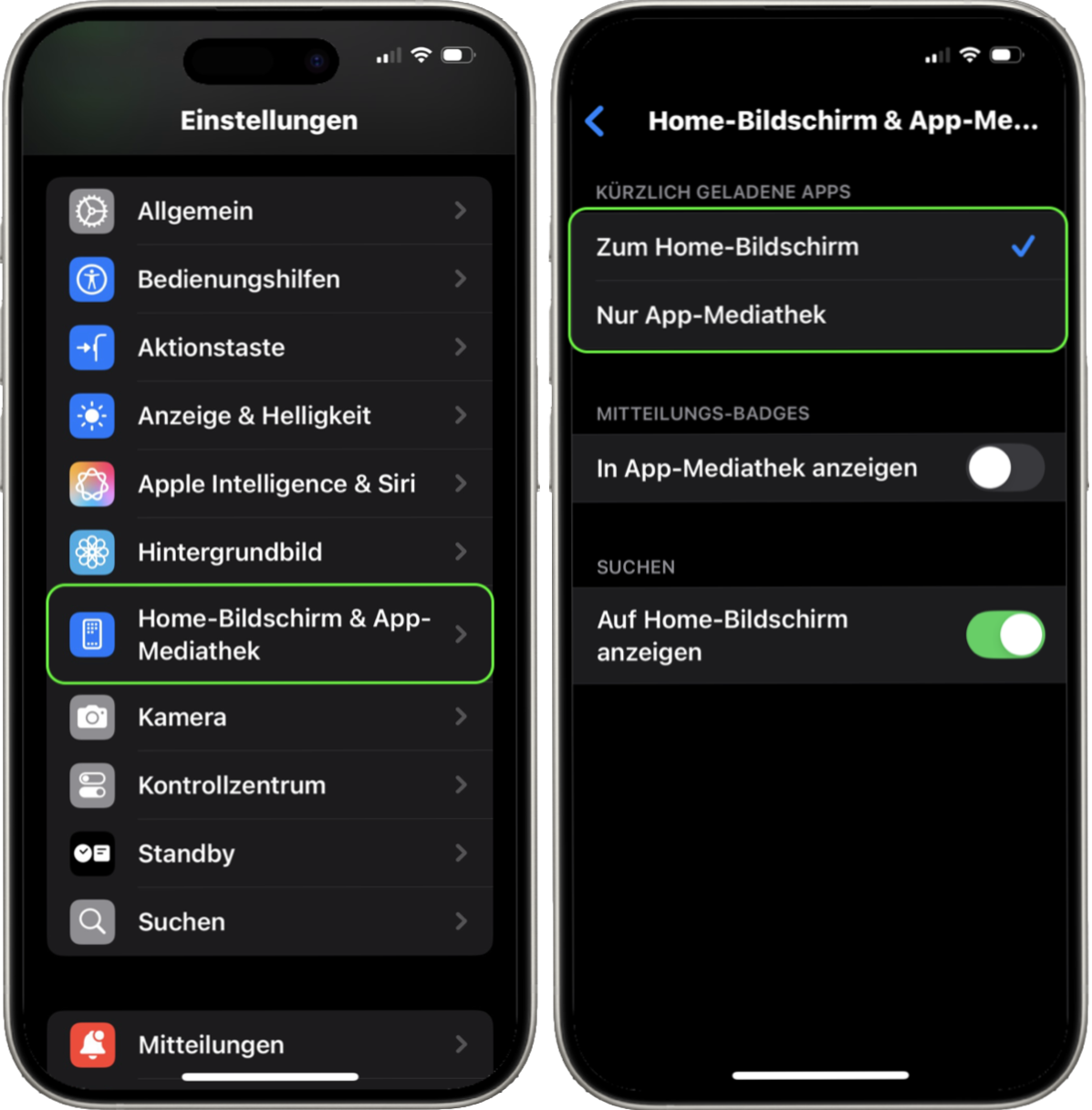 Du kannst selbst entscheiden, ob deine App nur in der App-Mediathek oder auch auf deinem Home-Bildschirm zu sehen ist. Die für dich passende Einstellung kannst du unter