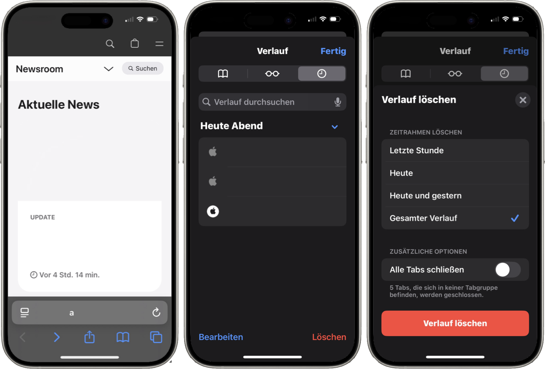 Hier gibt es einen Unterschied dazu, wie Verlauf- und Websitedaten gelöscht werden.