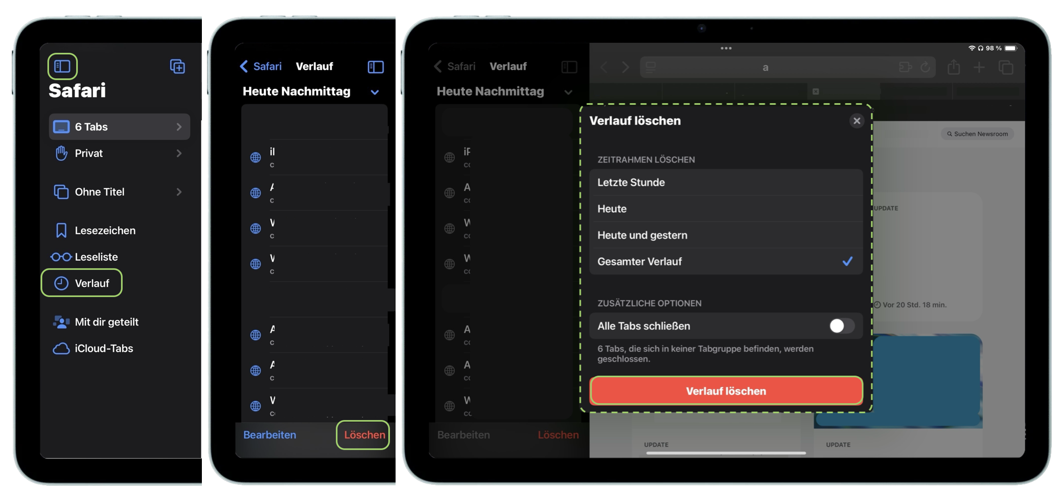 Über dein iPhone, iPad oder deinen iPod touch den Verlauf, Cache sowie Cookies aus Safari löschen