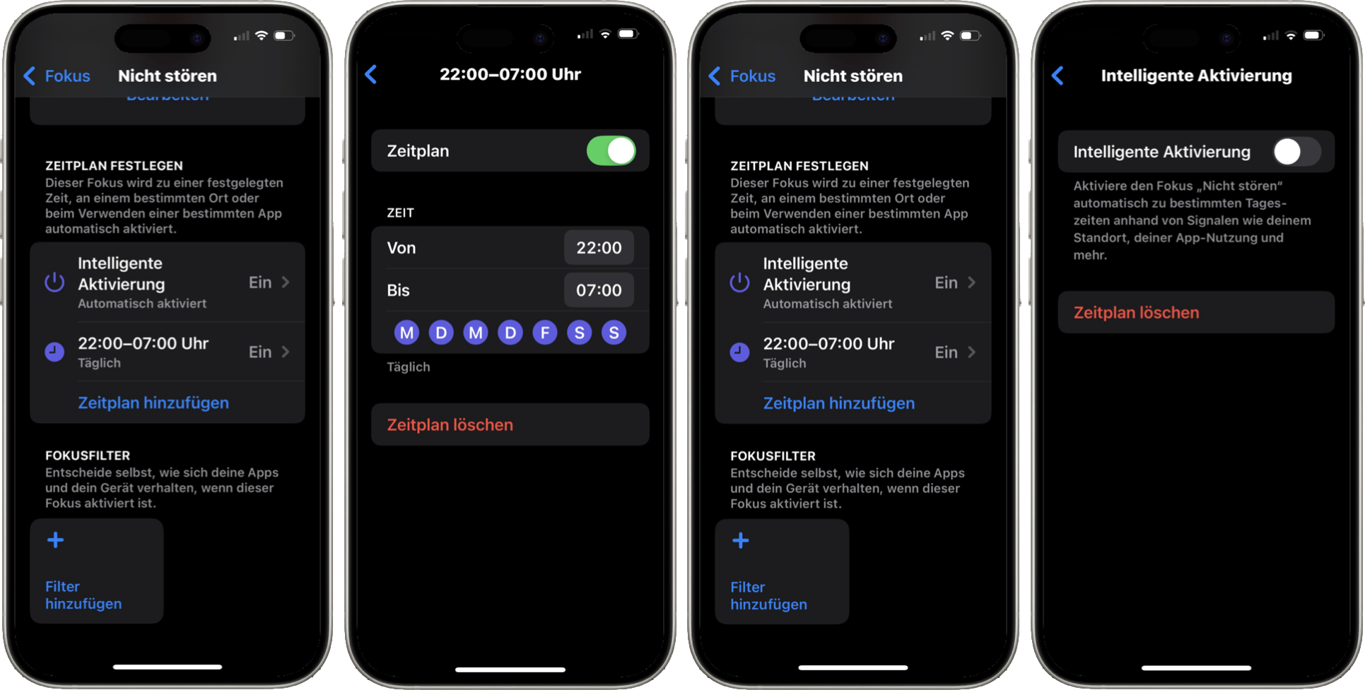 Aktivieren oder deaktivieren lassen sich die Einstellungen nicht nur über den Zeitplan oder die Intelligente Aktivierung. Sie kann auch geräteübergreifend oder gerätespezifisch genutzt werden.