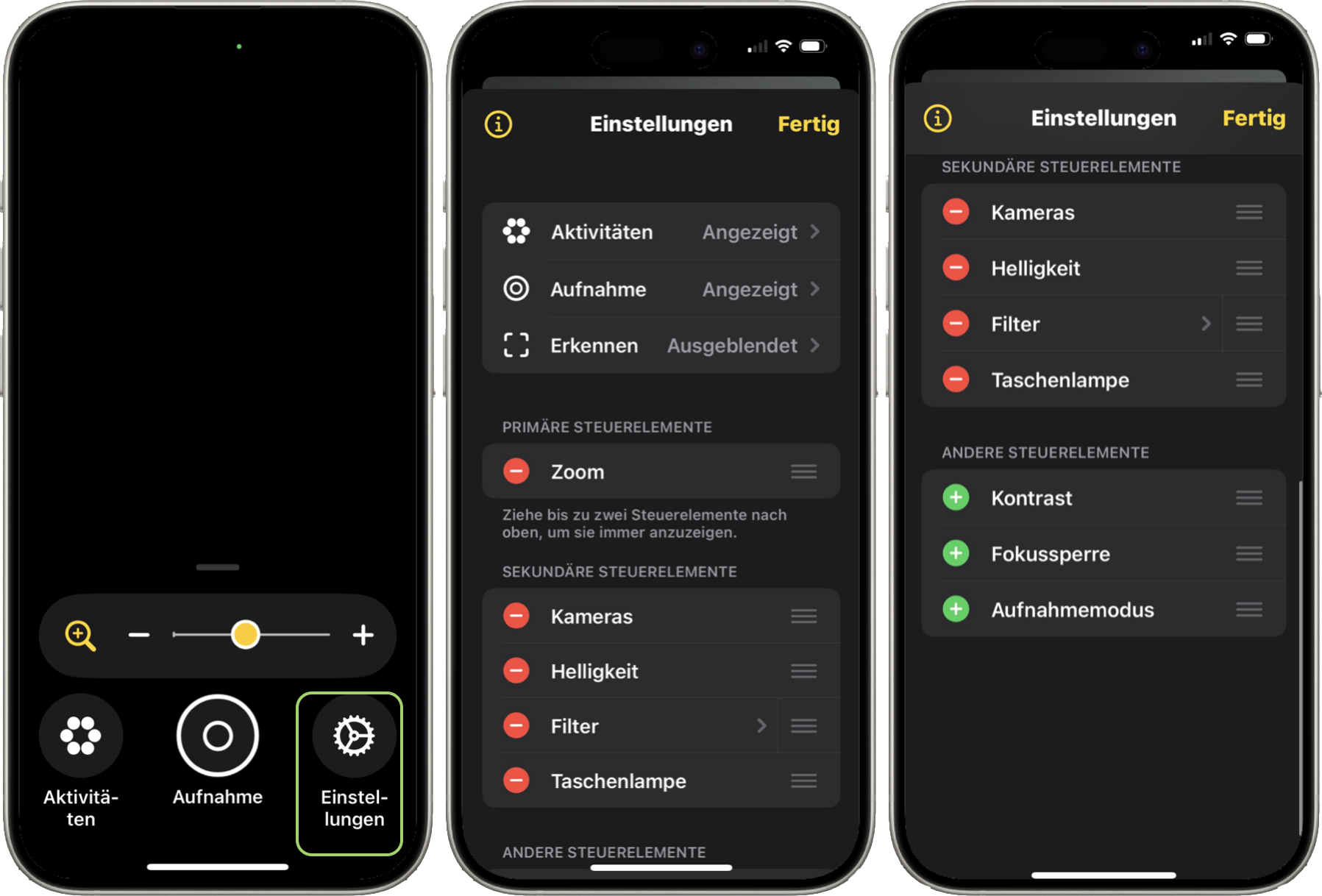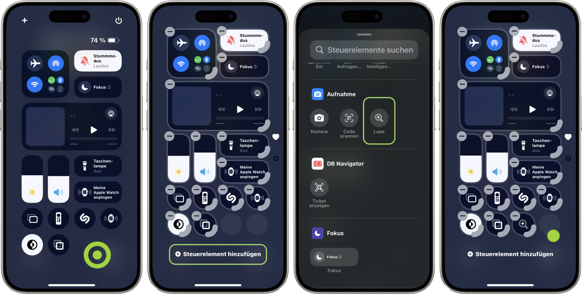 Einen schnellen Zugriff bietet dir auch das Kontrollzentrum, zu dem du die das Steuerelement für die Lupe hinzufügen kannst. Öffne hierzu das Kontrollzentrum und tippe länger auf eine freie Stelle des Displays.