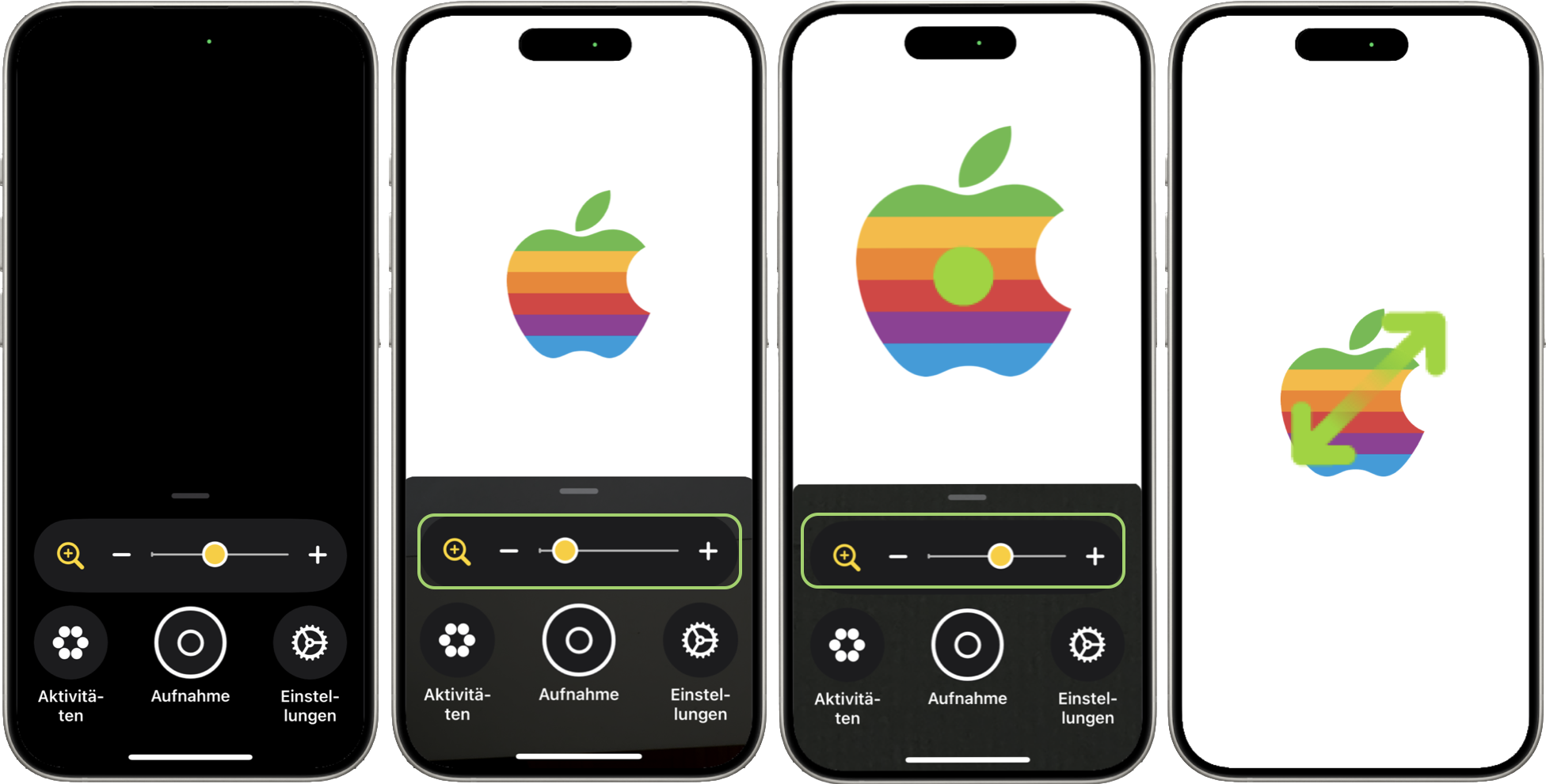 Im unteren Drittel der geöffneten App findest du die Steuerelemente, die dir nicht nur den Zoom anbieten.