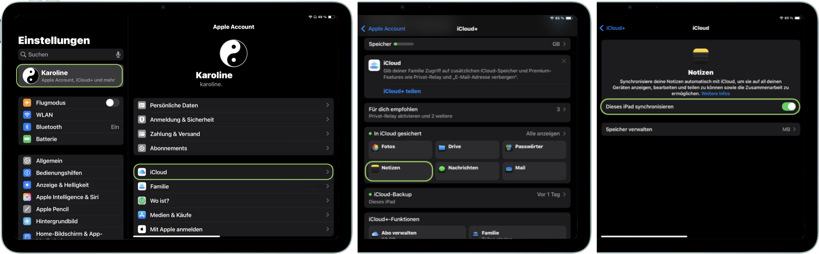 auf dem iPad kannst du deine Notizen ebenfalls synchronisieren,