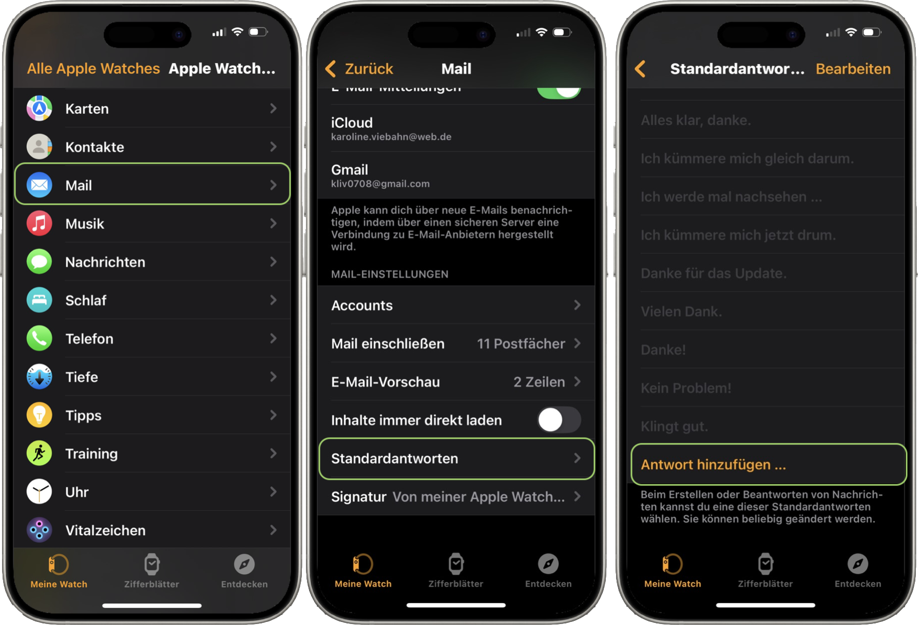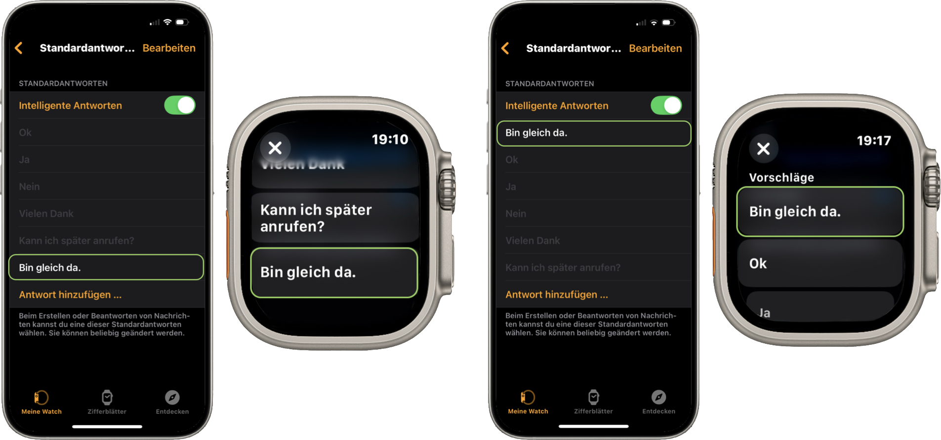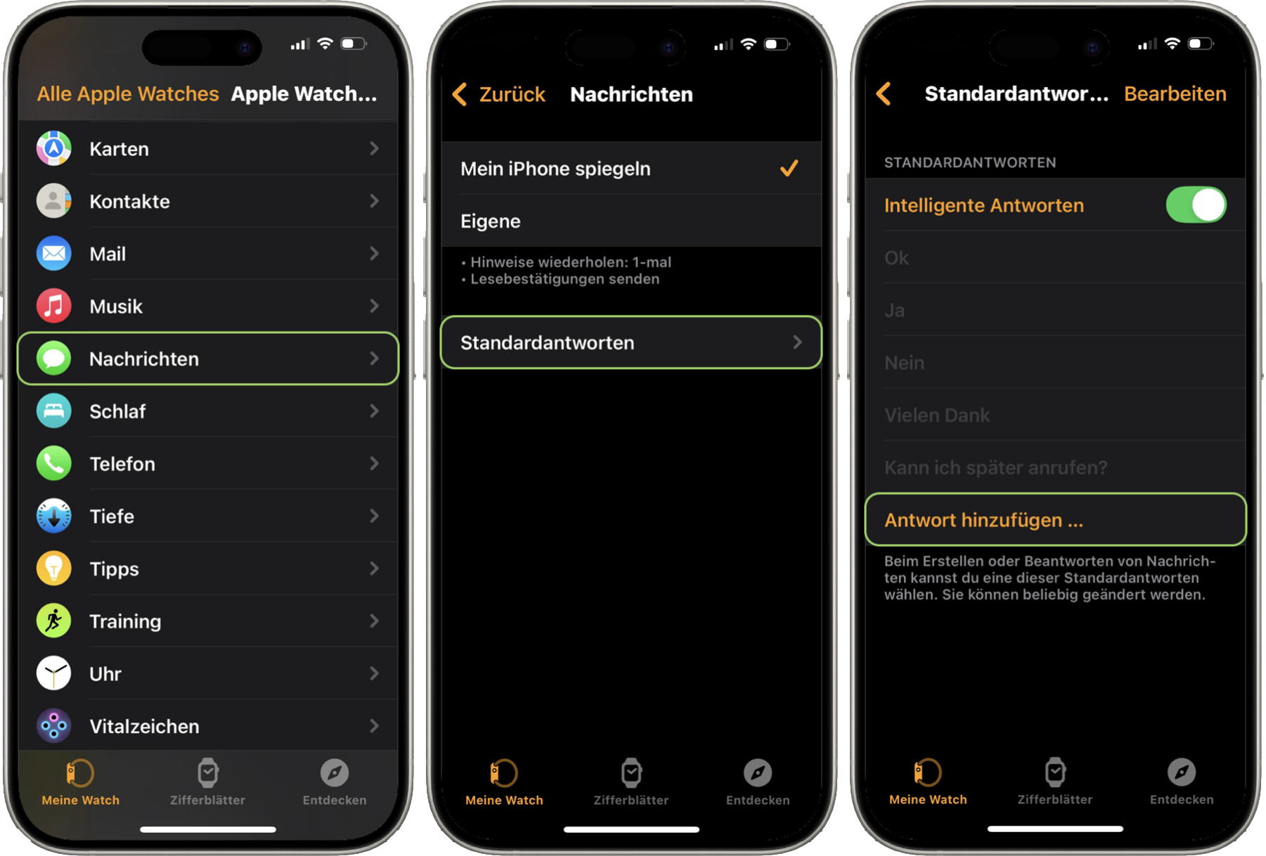 Hinzufügen von Schnellantworten für Mitteilungen von der Apple Watch