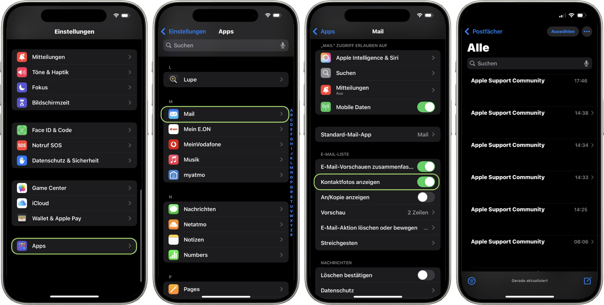 - Apps (ganz unten)