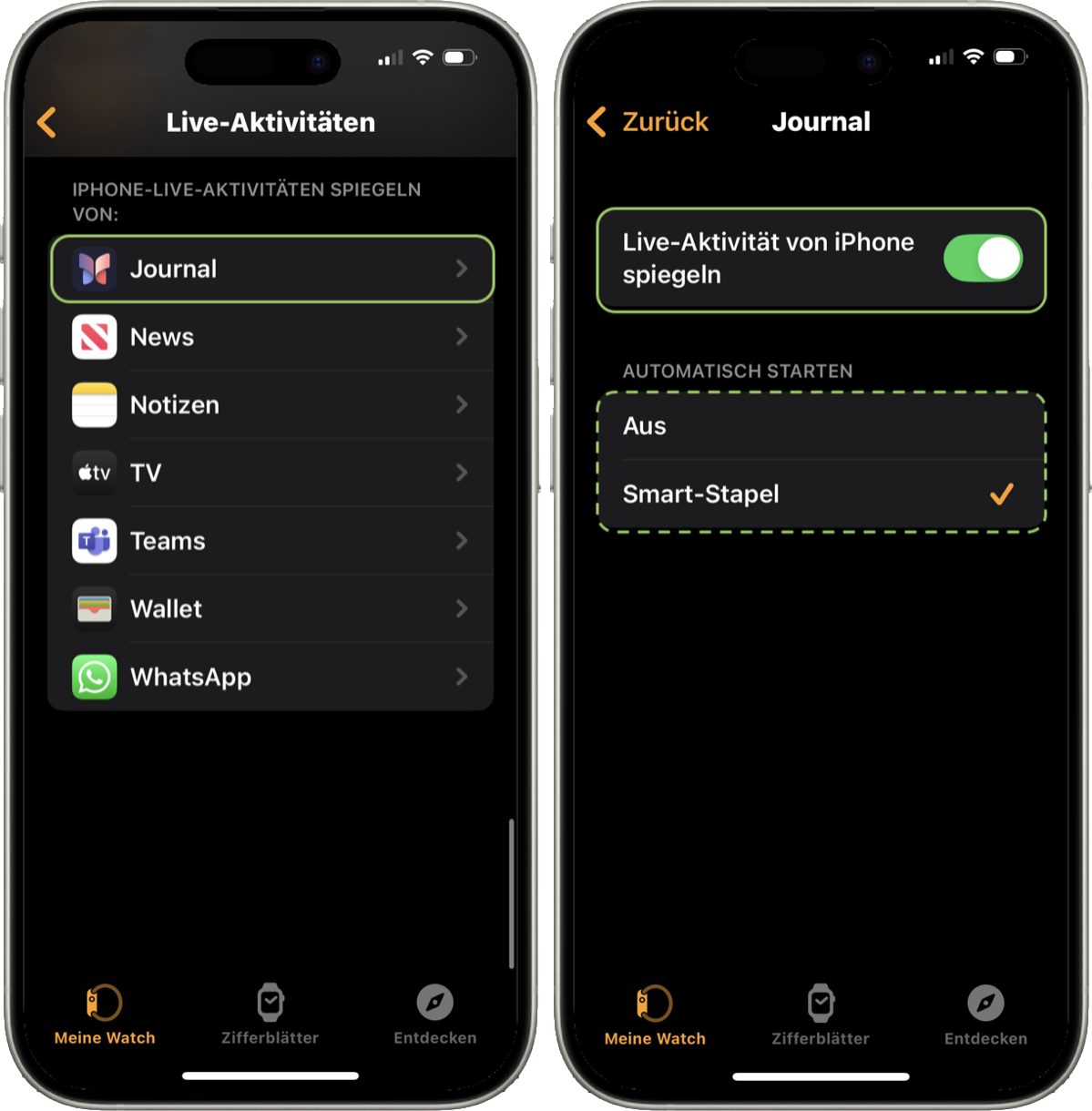 Im Smart-Stapel werden nicht nur Apps angezeigt, die auf deiner Apple Watch installiert sind. Die Anzeige kannst du auch für solche Apps festlegen, die vom iPhone gespiegelt werden.