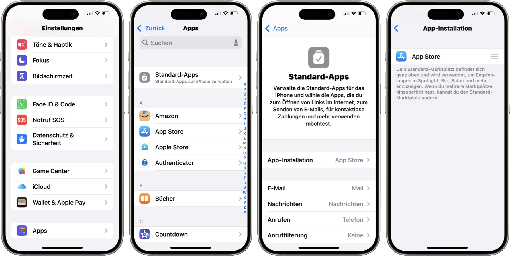 Dein iPhone bietet dir nämlich auch die Möglichkeit, einen zuvor installierten alternativen Appstore als Standard-App auszuwählen. Die dazu nötigen Einstellungen findest du unter