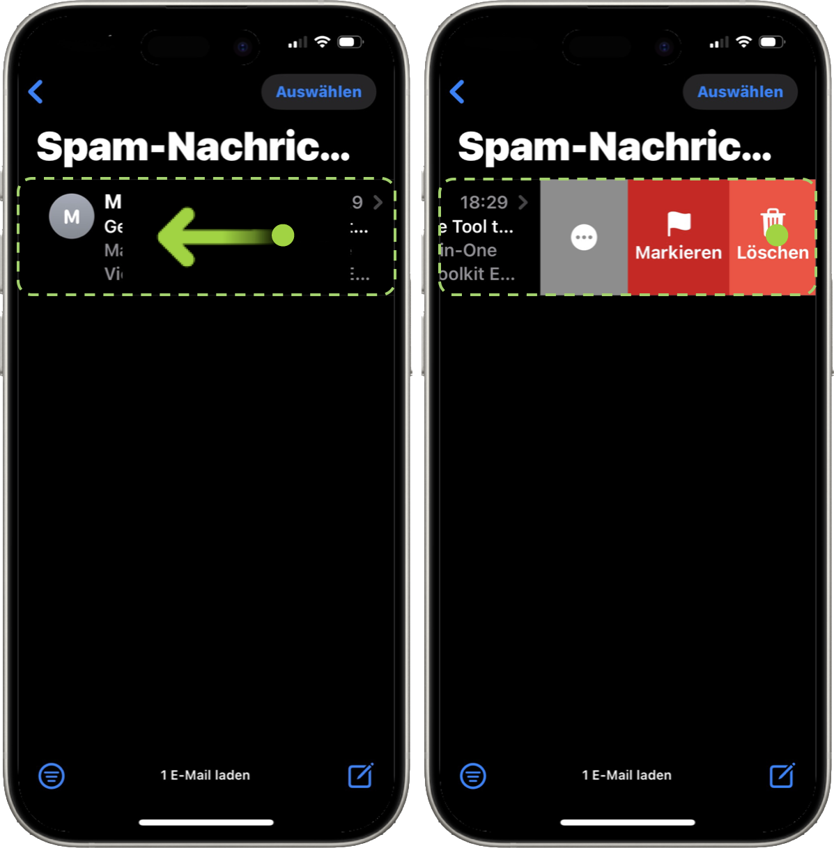 Tippe auf die Anzeige und wähle im nun angezeigten Fenster „Abmelden“ aus. Nachdem der Hinweis auf das Abo nicht mehr angezeigt wird, kannst du die Spam-Mail löschen.