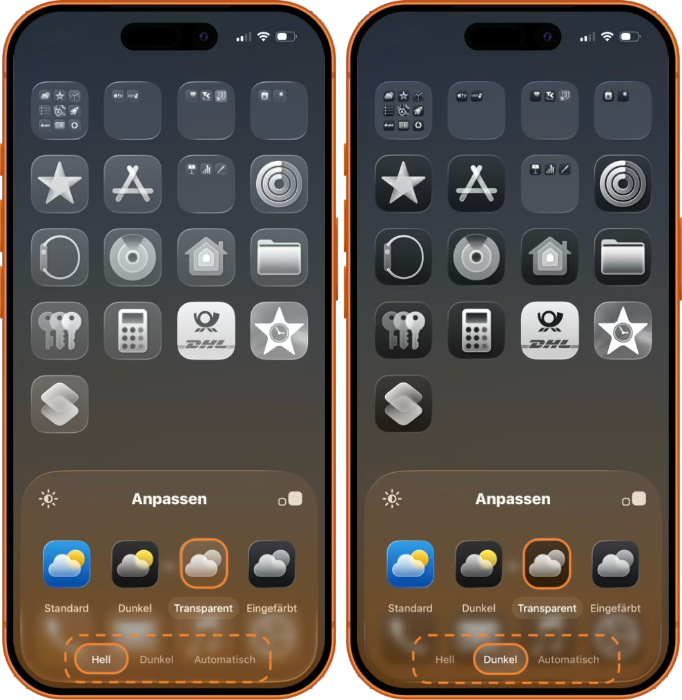 werden dir die Auswahlmöglichkeiten angezeigt, die du bereits aus iOS 18 oder neuer kennst.