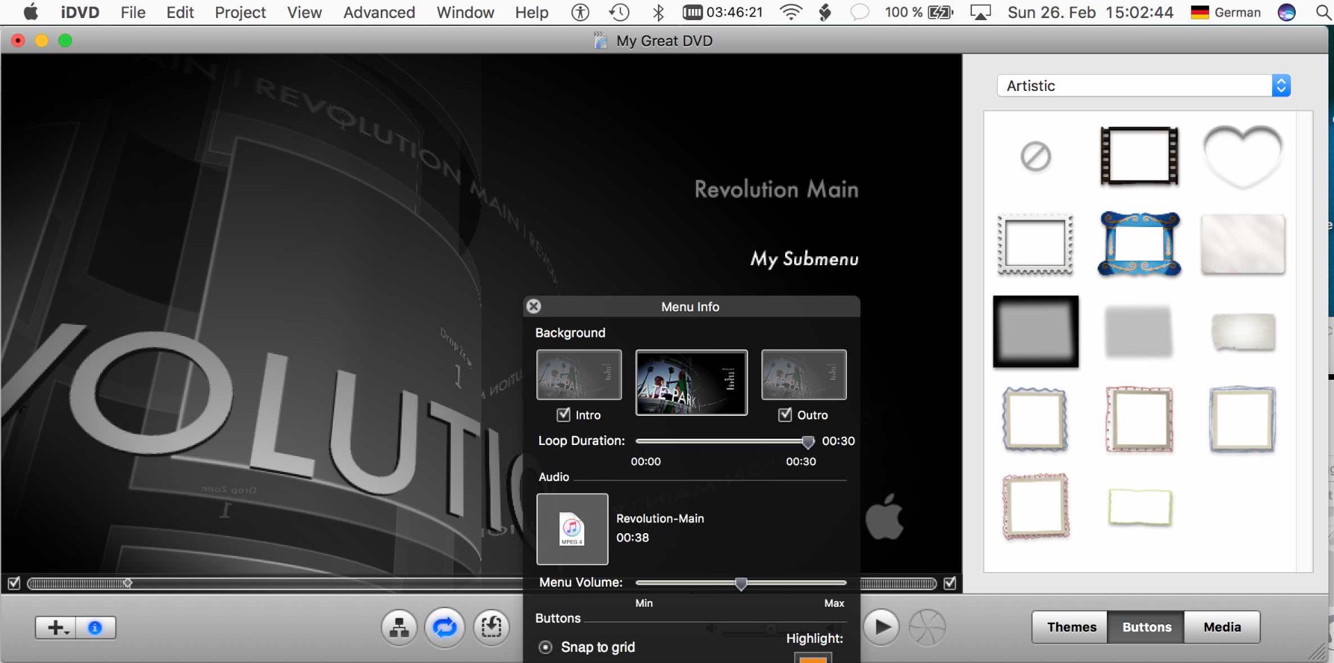 Aber klar kannst Du auch ohne Brenner DVDs 'machen', als Ausgabeformat 'Image' wählen, das resultierende .img-file mounten (doppel-click), es erscheint eine (virtuelle) Disk auf dem desktop, die sich ganz normal mit der DVDplayer.app wiedergeben lässt, incl allem zipp&zapp, Menus, Kapitel etc. Gut zu Testzwecken…