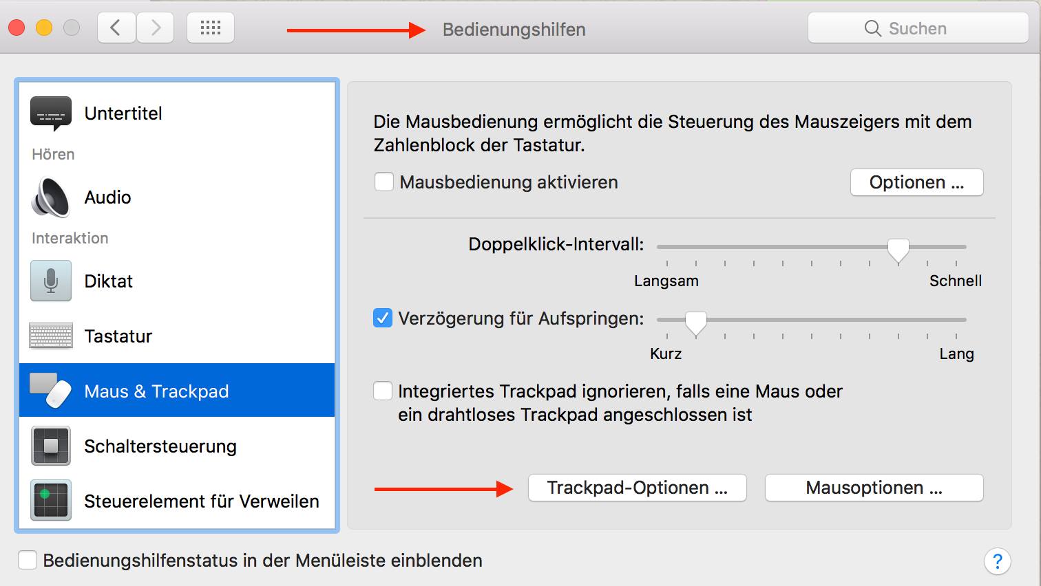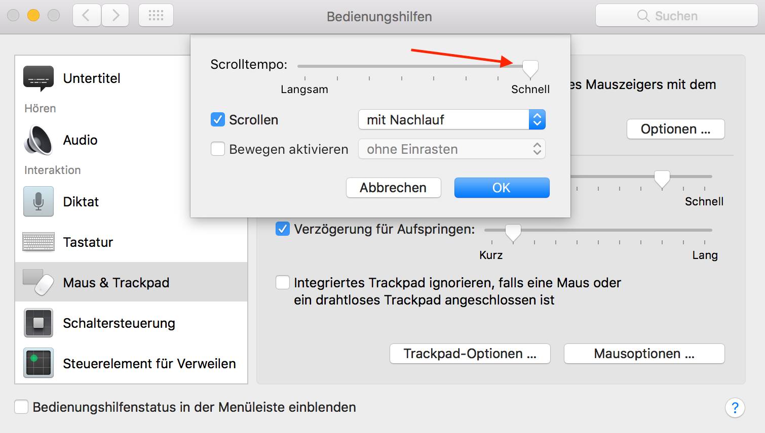 Trackpad, Bedienungshilfen, Scrollgeschwindigkeit