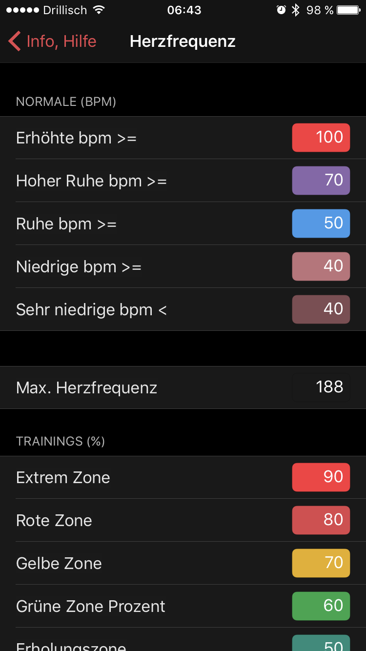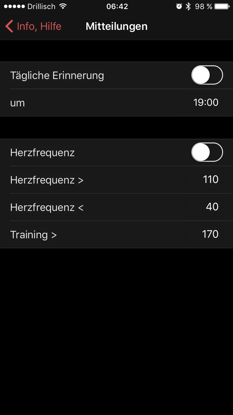 Man kann die maximale Herzfrequenz einstellen sowie einen Schwellenwert, bei dem eine Mitteilung gesendet wird.