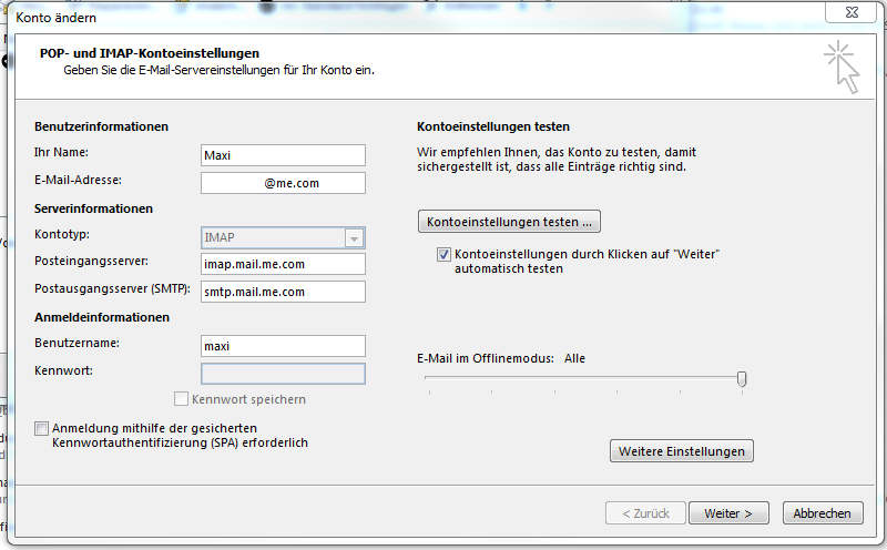 Fehler bei iCloud/Email Integration in Outlook: Von Outlook kann keine Verbindung mit dem Postausgangsserver (SMTP) hergestellt werden