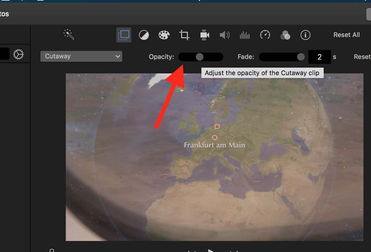 Deckkraft eines Clips in der iMovie-Version 10.1.5
