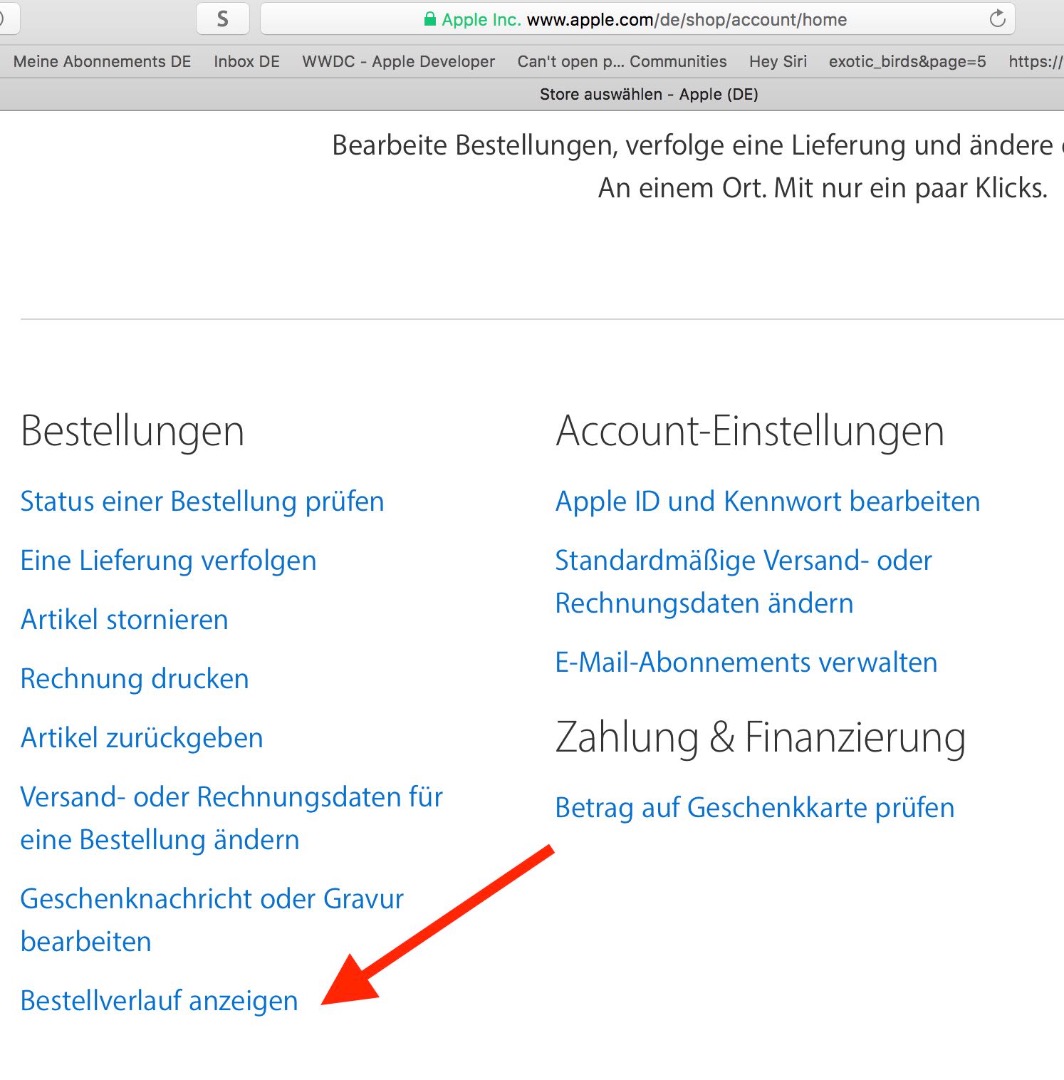 PROBLEM: ich habe nicht über meine Apple-ID, also angemeldet bestellt, sondern als Gast/neutraler Kunde..