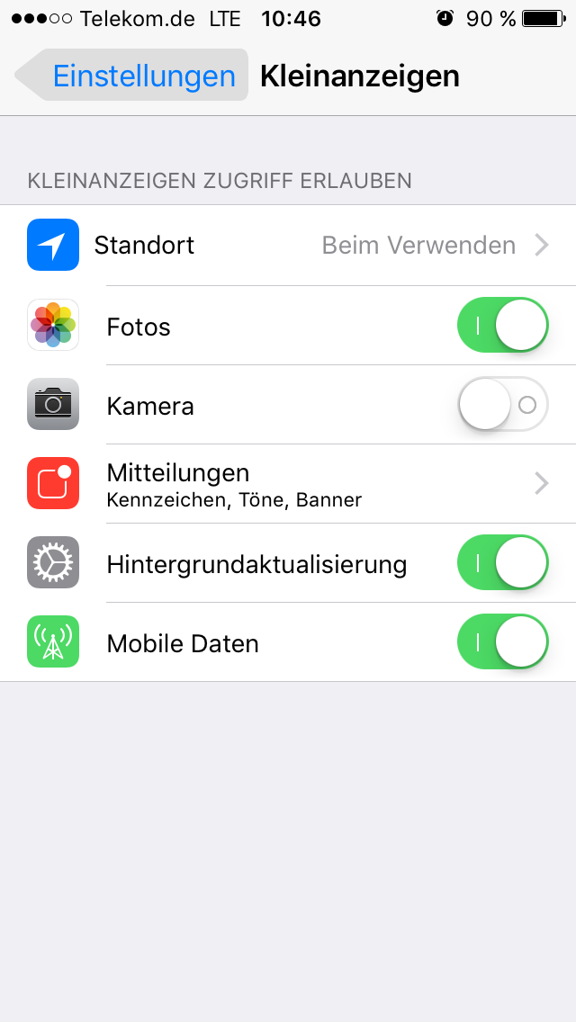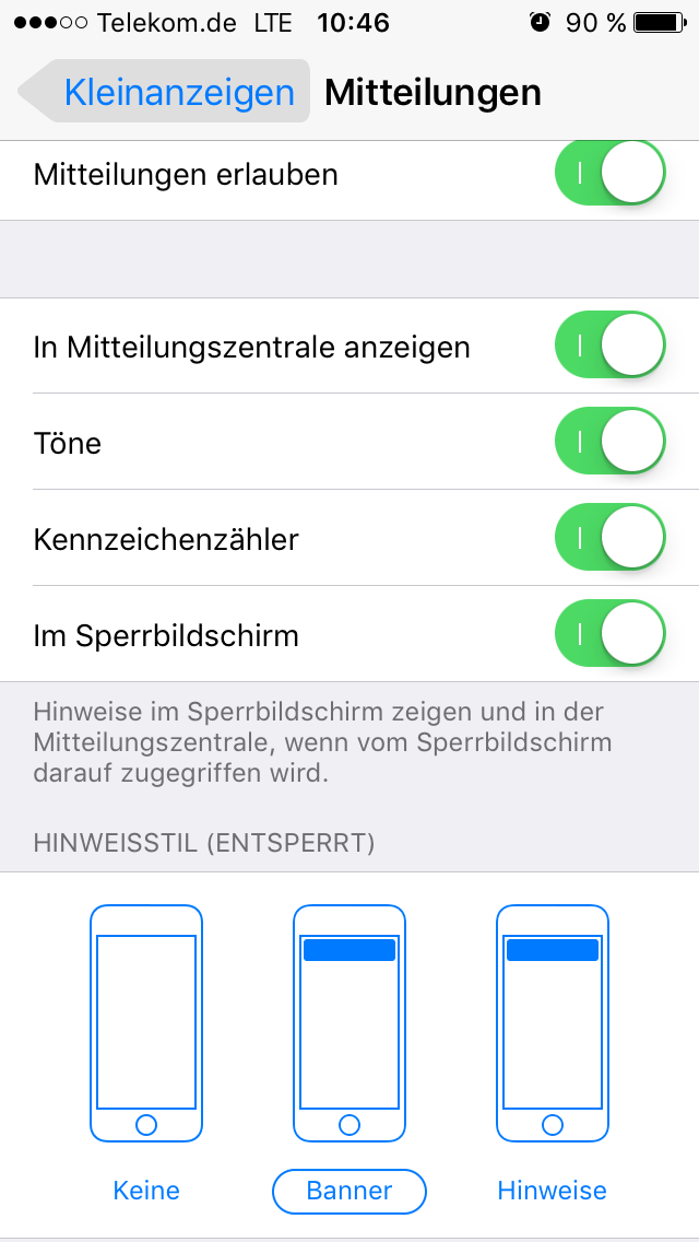 Die Kleinanzeigen App ist nur als beschreibendes Beispiel gedacht! Auch hier wurde an den Einstellungen nicht rumgespielt oder experimentiert. Wobei es mich hier nicht stört, dennoch aber sehr bei den Mails nervt, da ich wie schon geschrieben alles über iPhone mache...