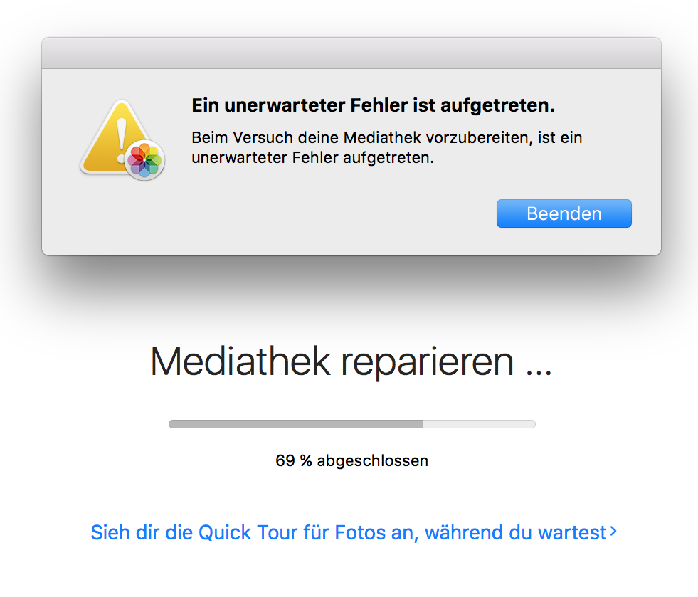 Ich möchte meine Aperture-Mediathek nach Fotos importieren, da ich zukünftig Fotos für die Verwaltung meiner Bilder nutzen möchte. Dabei kommt es allerdings in allen fünf bisher durchgeführten Versuchen zum selben Fehler: