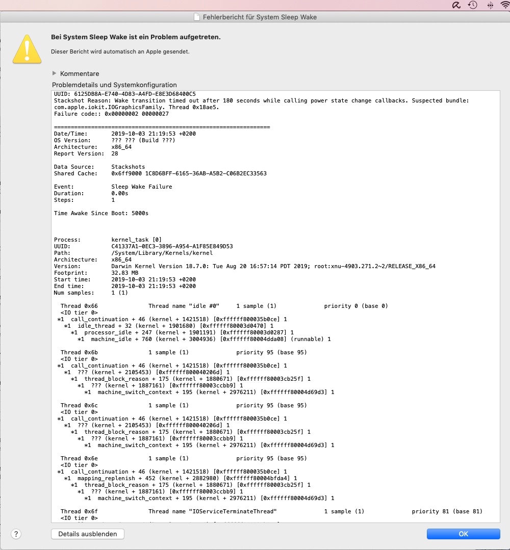 Gestern war ich dann so genervt, dass ich mir einen neuen iMac Pro bestellt habe. Wenn der komplett instaliert ist, geht mein iMac direkt zu Apple und die sollen sehen, wie sie ihn reparieren. Ist das geschehen, wandert er zu eBAY.