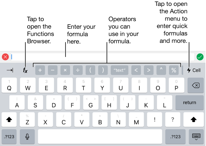 Wenn ich eine Formel in Numbers für iPad eintippe, zeigt die Tastatur oberhalb der Buchstaben Zahlen (1…0) und Symbole (z.B. &,%,[, etc.) in GRAU (siehe unten). Wie kann ich diese Zahlen und Symbole direkt mit dieser Tastatur eingeben? Ich finde screenshots der Tastatur auf den Hilfe-Seiten Numbers for iPad: Formula keyboard aber keinerlei Hinweise oder Anleitung. Kann mir jemand helfen, bitte?