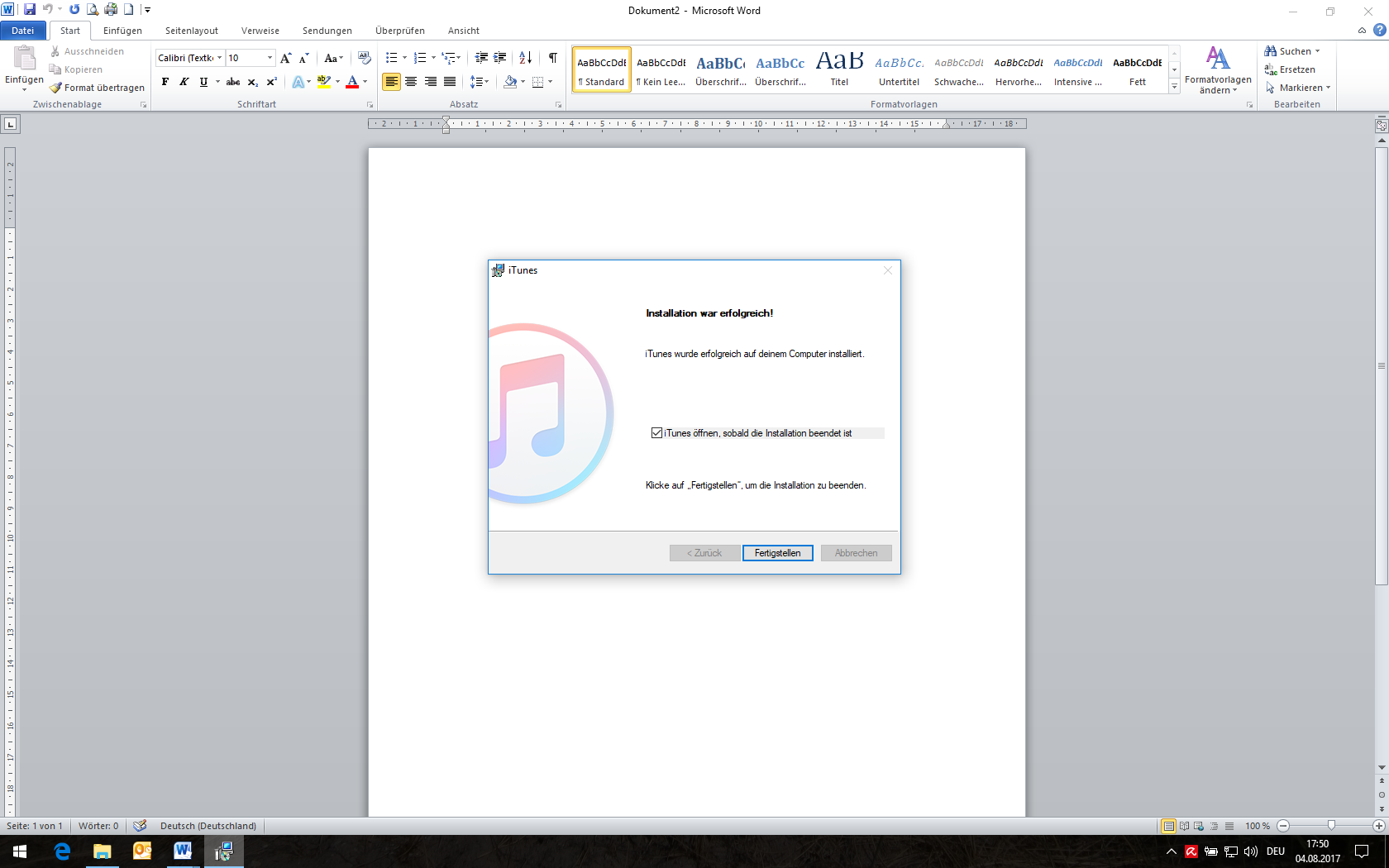 Jetzt iTunes setup aus dem Order Downloads gestartet