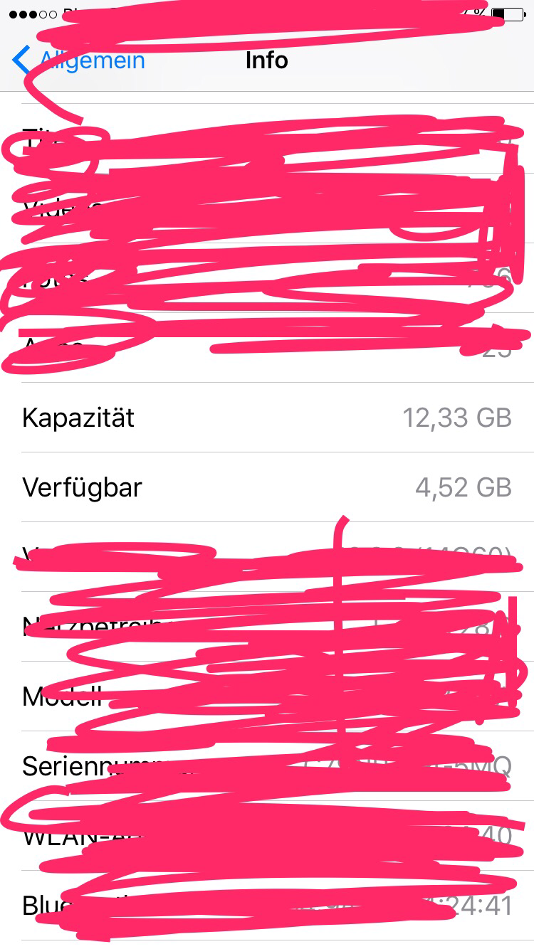 Und bei Einstellungen unter Allgemein bei Info steht was für eine Kapazität?