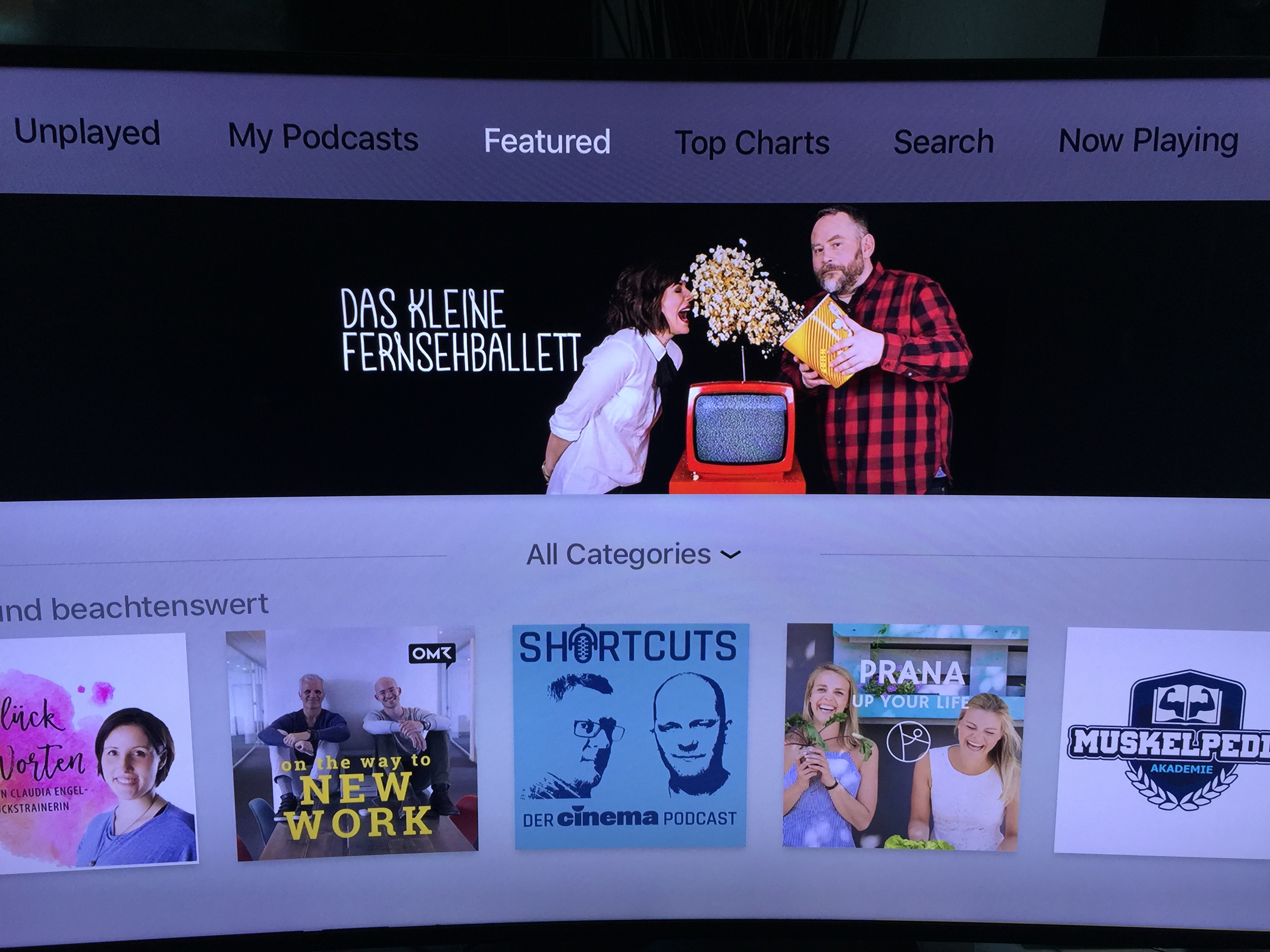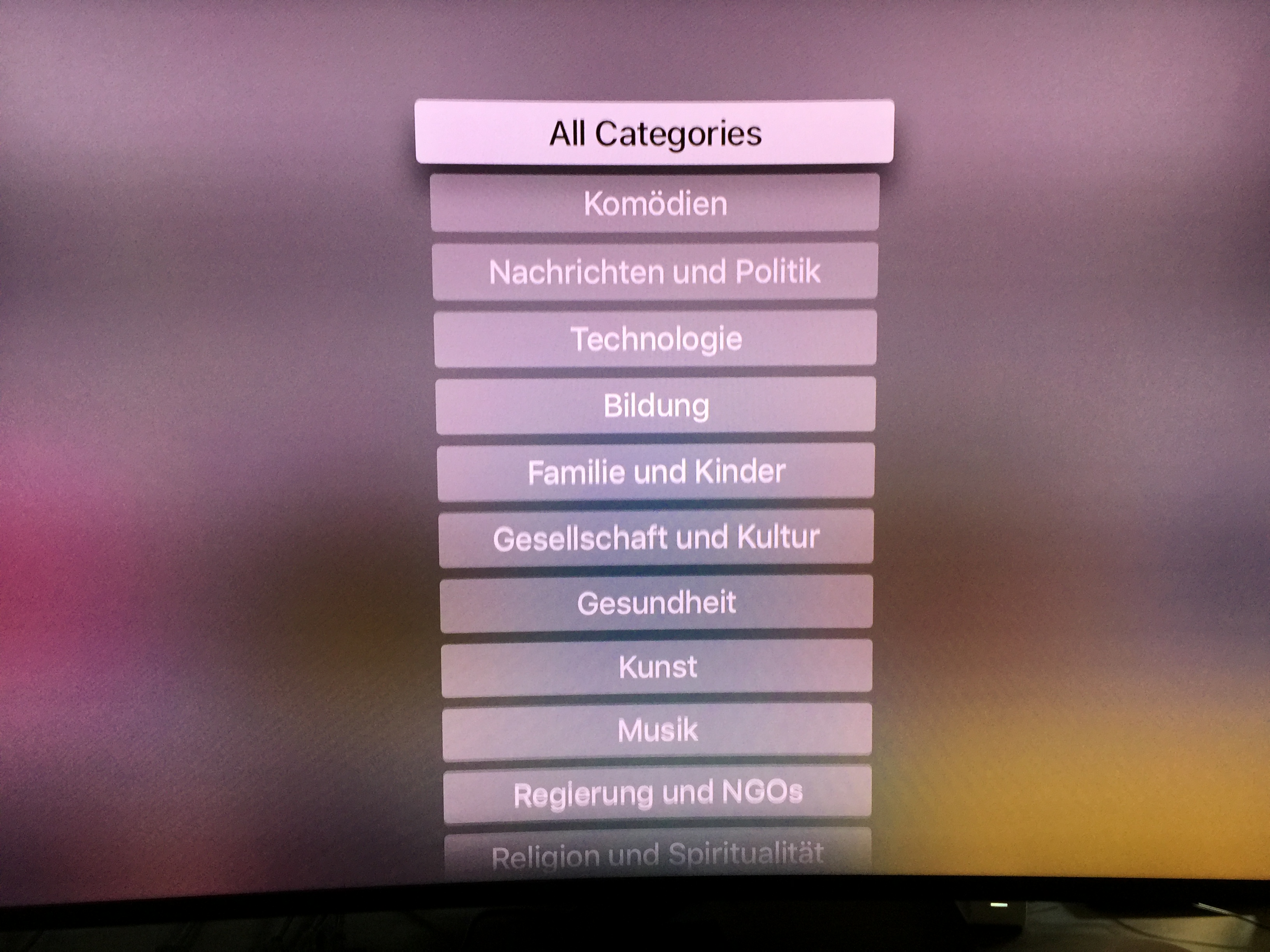 In der von Haus aus installierten Apple Podcast App ist die Menüleiste plötzlich auf englisch, auch die einzelnen Rubriken-Überschriften sind im Englischen verfasst.